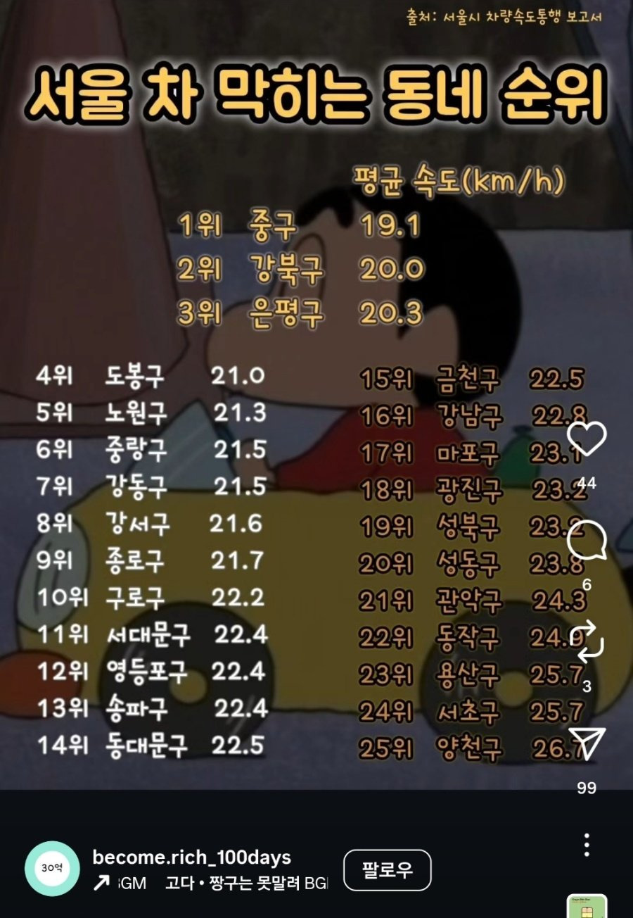 주말까지포함된건가? 강남 주말에는 뻥뻥 뚫리니까 오히려 중구는 주말에도 막히는거같구