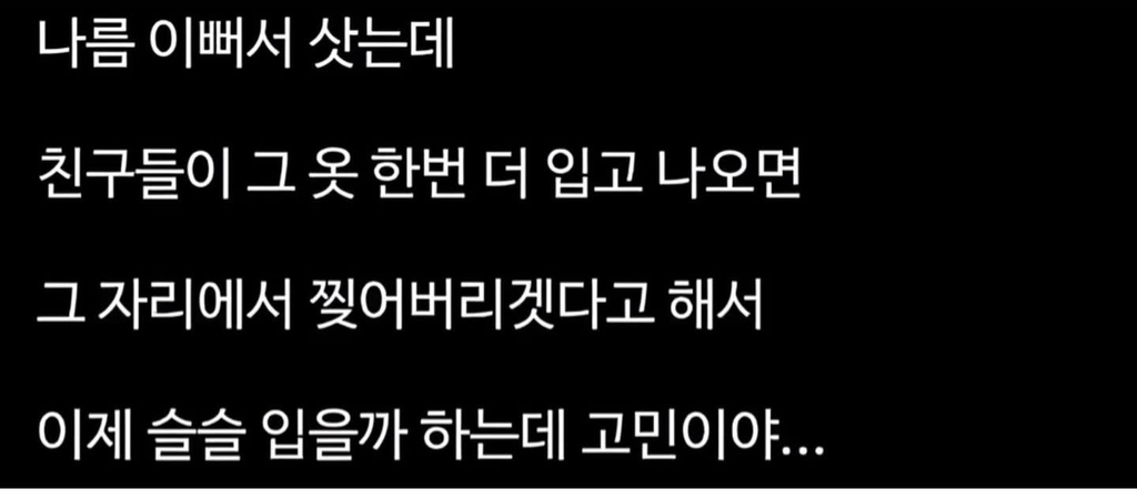 친구가 입고 오면 찢는다? 봐준다? 작성자가을날3|작성시간25.10.23|조회수9,760 목록 댓글 8 글자크기 작게가 글자크기 크게가 다음검색 현재 게시글 추가 기능 열기 북마크 공유하기 신고 센터로 신고 댓글 댓글 8 댓글쓰기 답글쓰기 댓글 리스트 작성자Mikel Arteta Amatriain | 작성시간 25.10.23 왜 이쁜데 작성자음악대학 | 작성시간 25.10.23 오우 두번째 거 쉽지 않은데... 작성자류다희 | 작성시간 25.10.23 하루종일 놀림 작성자께께오톡 | 작성시간 25.10.24 입은모습 궁금하다 ㅋㅋㅋ 작성자Michael essien | 작성시간 25.10.24 이야 별로긴하다 댓글 전체보기