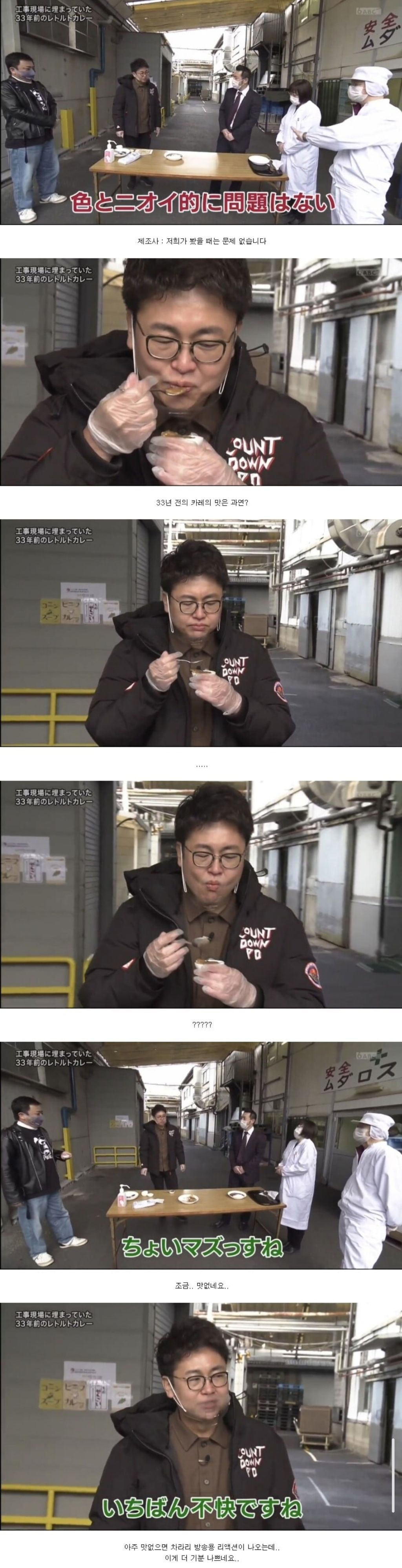 공사장에서 발견된 33년 묵은 카레를 먹어보았다 작성자ChatGPT|작성시간25.10.24|조회수13,729 목록 댓글 1 글자크기 작게가 글자크기 크게가 다음검색 현재 게시글 추가 기능 열기 북마크 공유하기 신고 센터로 신고 댓글 댓글 1 댓글쓰기 답글쓰기 댓글 리스트 작성자라즈베리 | 작성시간 25.10.24 저걸 먹을 용기가 있다는게 놀랍네 ㄷㄷ;; 댓글 전체보기