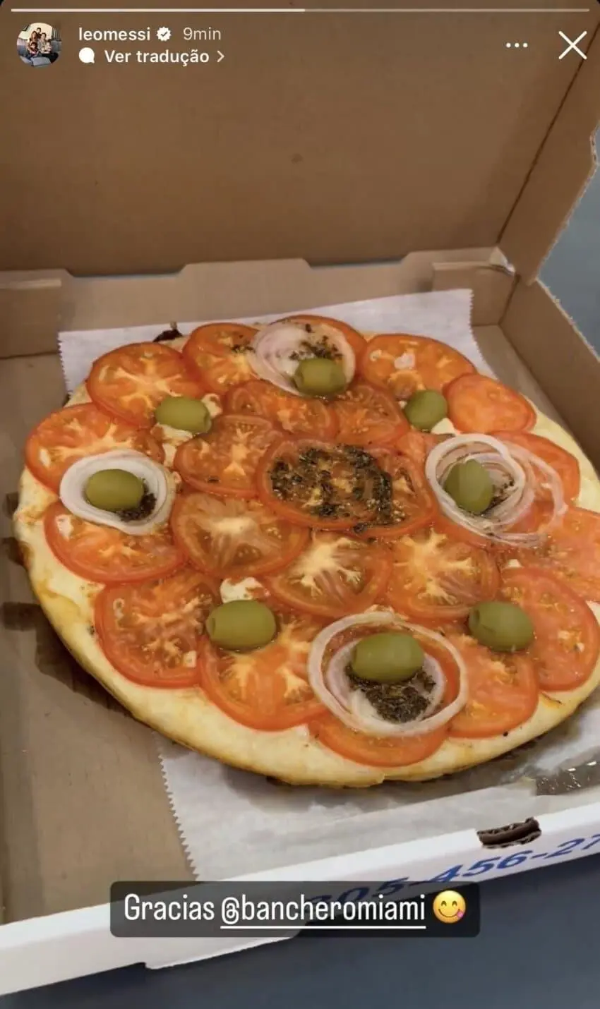 보도에 따르면 메시는 자신의 SNS를 통해 마이애미 피자 가게로부터 배달받은 피자의 사진을 올리며 "고마워요"라고 감사를 표했다. 메시가 공개한 사진 속 피자는 하얀 반죽 위에 치즈와 토마토, 약간의 양파와 올리브만이 올라가 있어 일반 사람들이 상상하기 어려운 피자의 모습이었다.