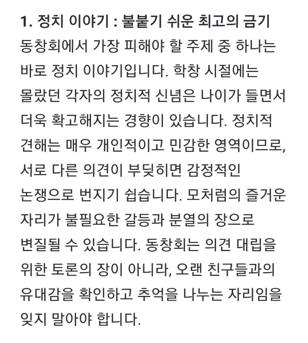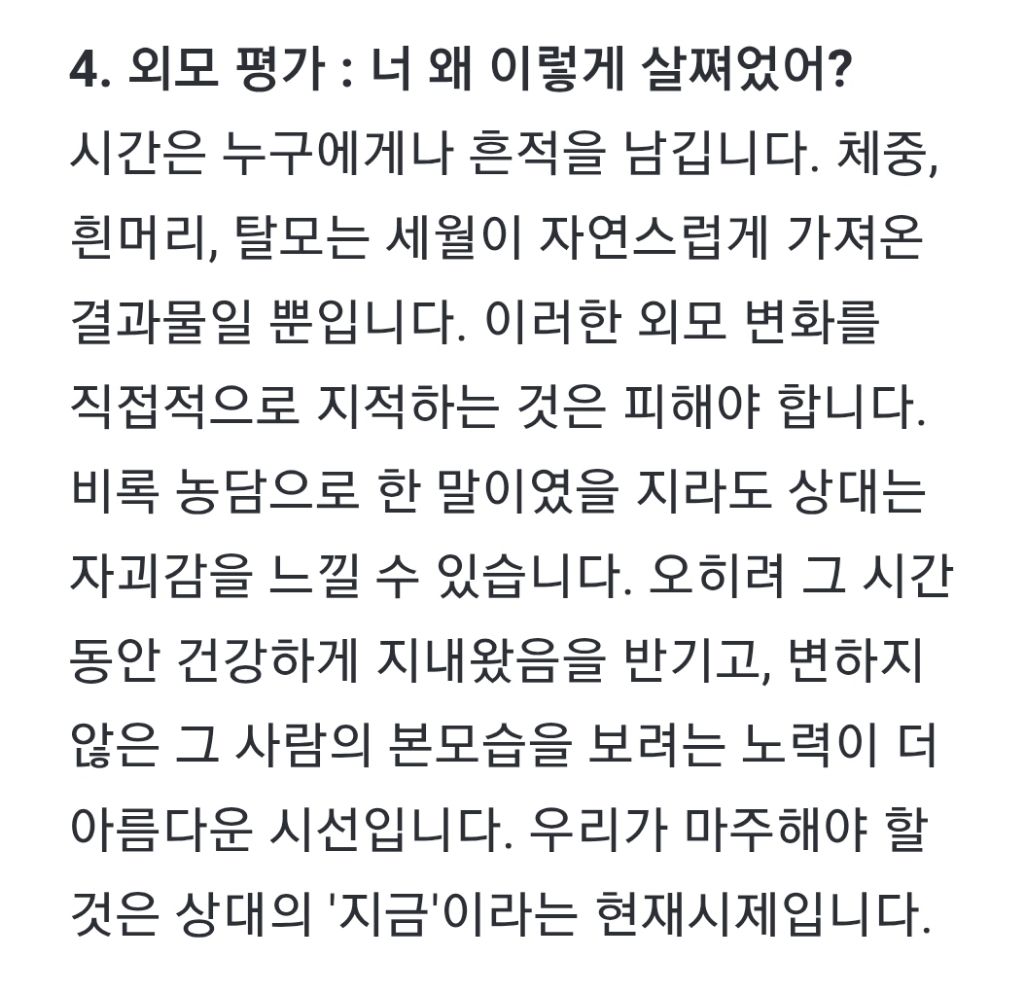 작성자바이에른 레버쿠젠 작성시간 25.10.25 어떤글에는 근데 동창들 만나면 맨날 했던 수십년전 얘기만 또 해서, 새로운게 없다고 질린다고 하던데