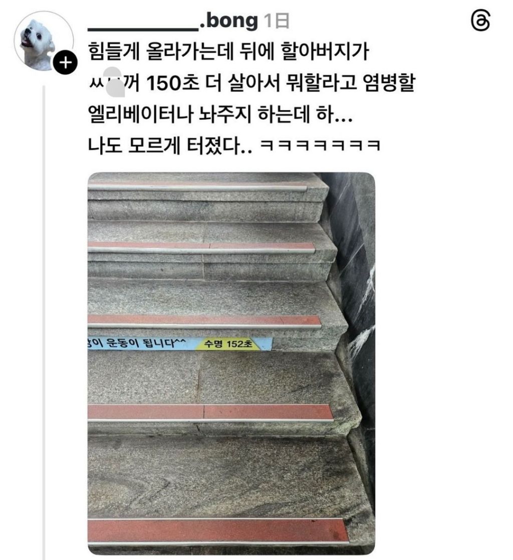 계단 힘들게 올라가고 있었는데 뒤에 할아버지가.. 작성자러바오|작성시간25.10.25|조회수16,154 목록 댓글 4 글자크기 작게가 글자크기 크게가 다음검색 현재 게시글 추가 기능 열기 북마크 공유하기 신고 센터로 신고 댓글 댓글 4 댓글쓰기 답글쓰기 댓글 리스트 작성자롭슨 | 작성시간 25.10.25 ㅋㅋㅋㅋㅋㅋㅋㅋ 작성자Google | 작성시간 25.10.25 맞말 ㅋㅋㅋ 작성자tnatropmI | 작성시간 25.10.26 ㅋㅋㅋㅋ 작성자권석진 | 작성시간 25.10.26 ㅋㅋㅋㅋㅋ 댓글 전체보기