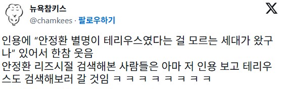 안정환 리즈를 모르는 애들은 테리우스는 더더욱 모르는 세대다..
