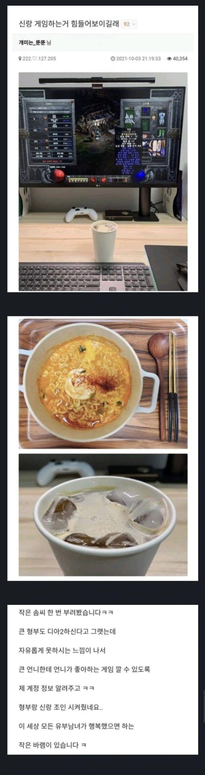 남편이 게임할 때 흔한 아내의 모습 작성자러바오|작성시간25.10.26|조회수9,386 목록 댓글 4 글자크기 작게가 글자크기 크게가 다음검색 현재 게시글 추가 기능 열기 북마크 공유하기 신고 센터로 신고 댓글 댓글 4 댓글쓰기 답글쓰기 댓글 리스트 작성자tnatropmI | 작성시간 25.10.26 ㅎㅎ 작성자마이너스템포 | 작성시간 25.10.26 우와 작성자아트날 | 작성시간 25.10.26 스피릿칼이네 작성자H_Crespo | 작성시간 25.10.26 헐 대박 댓글 전체보기
