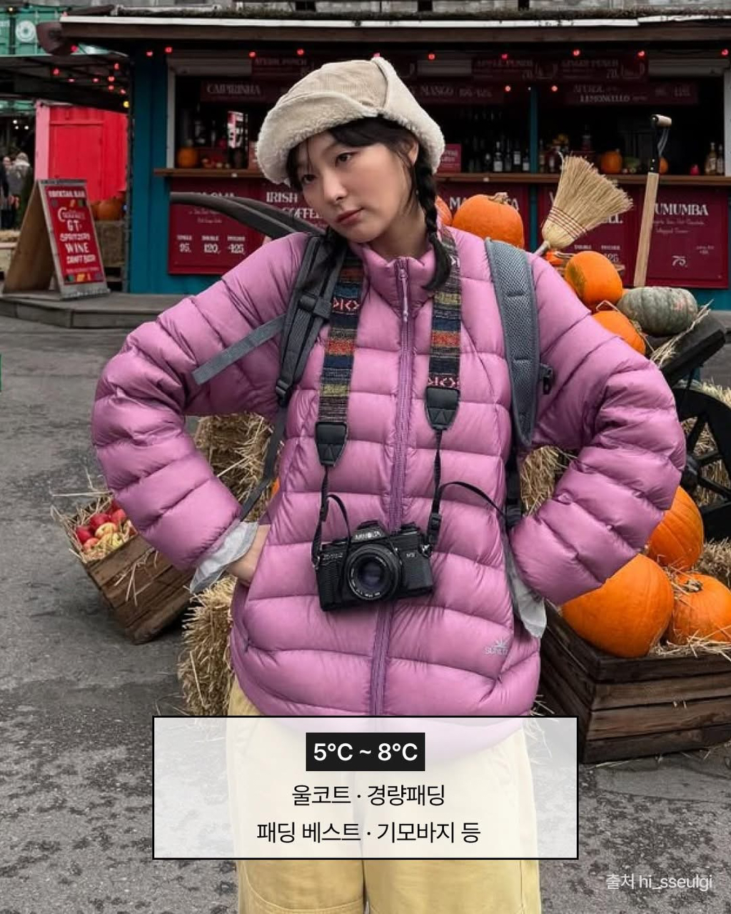 기온별 추천 옷차림 작성자가을날3|작성시간25.10.27|조회수11,918 목록 댓글 6 글자크기 작게가 글자크기 크게가 출처 일인가장 다음검색 현재 게시글 추가 기능 열기 북마크 공유하기 신고 센터로 신고 댓글 댓글 6 댓글쓰기 답글쓰기 댓글 리스트 작성자극단적으로 | 작성시간 25.10.27 10도 이상 반팔 10도 이하 동계 작성자윤태진 | 작성시간 25.10.27 바람 유무에 따라서… 작성자아라별 | 작성시간 25.10.27 굿 작성자아저씨 | 작성시간 25.10.27 첫짤 패딩 이쁘넹 작성자금요일 | 작성시간 25.10.28 기온별 옷차림 댓글 전체보기