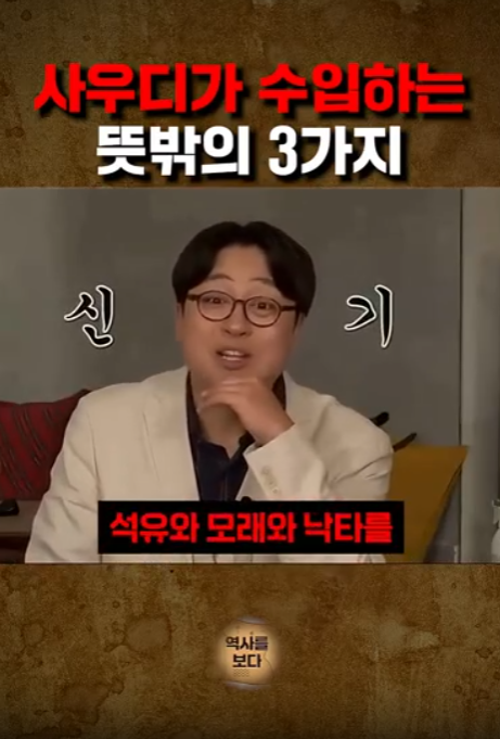 사우디가 수입하는 뜻밖의 3가지 작성자인조인간 17호|작성시간25.10.27|조회수6,294 목록 댓글 6 글자크기 작게가 글자크기 크게가 사우디 모래는 입자가 부드러워 공사 하기에 부적절 석유는 정제하는데 돈이 많이 들어서 수입 낙타는 식용으로 다음검색 현재 게시글 추가 기능 열기 북마크 공유하기 신고 센터로 신고 댓글 댓글 6 댓글쓰기 답글쓰기 댓글 리스트 작성자고산 | 작성시간 25.10.27 이제 사우디 본토에서 직접 정제하여 사용,수출 한다고 국부펀드 투자 예고되니 국내 정유사 주가랑 전망 어렵다는 뉴스 얼마전에 봤음 작성자I’d rather be ashes than dust | 작성시간 25.10.27 식량 군인도 수입 작성자헤헤ㅉㅌ | 작성시간 25.10.27 낙타먹지말라그래서 그랫구나;;? 작성자Starbucks | 작성시간 25.10.27 돈도 많으면서 왜 석유화학시설을 안해놓지? 작성자금요일 | 작성시간 25.10.28 ㄷㄷ 댓글 전체보기