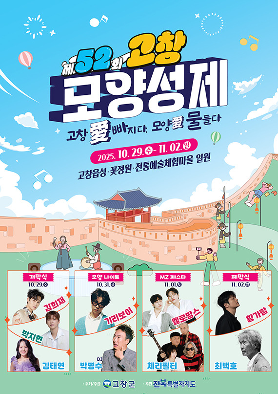 [연예]2025 고창 모양성제 공연 출연진 라인업.jpg 작성자탱구|작성시간25.10.29|조회수2,034 목록 댓글 1 글자크기 작게가 글자크기 크게가 다음검색 현재 게시글 추가 기능 열기 북마크 공유하기 신고 센터로 신고 댓글 댓글 1 댓글쓰기 답글쓰기 댓글 리스트 작성자오스먼트 | 작성시간 25.10.29 오 명수형! 댓글 전체보기