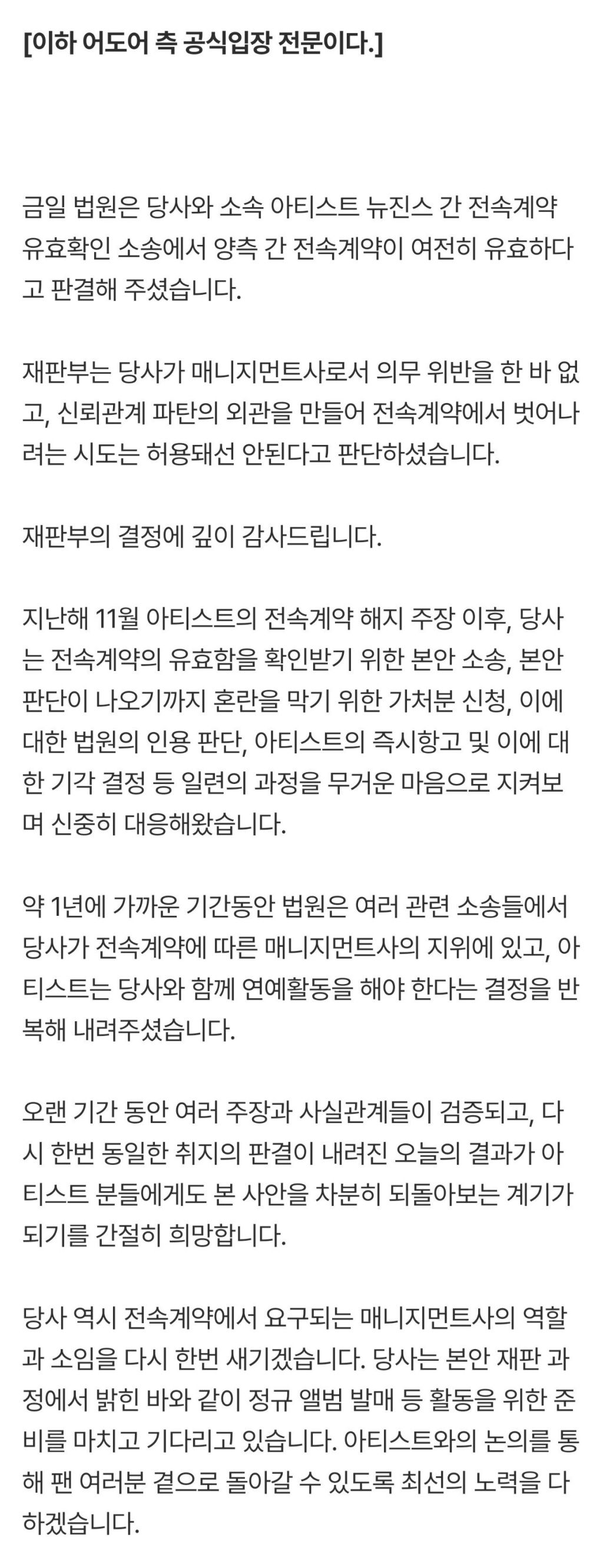 처음부터 어도어는 확실히 저리 스탠스 취함