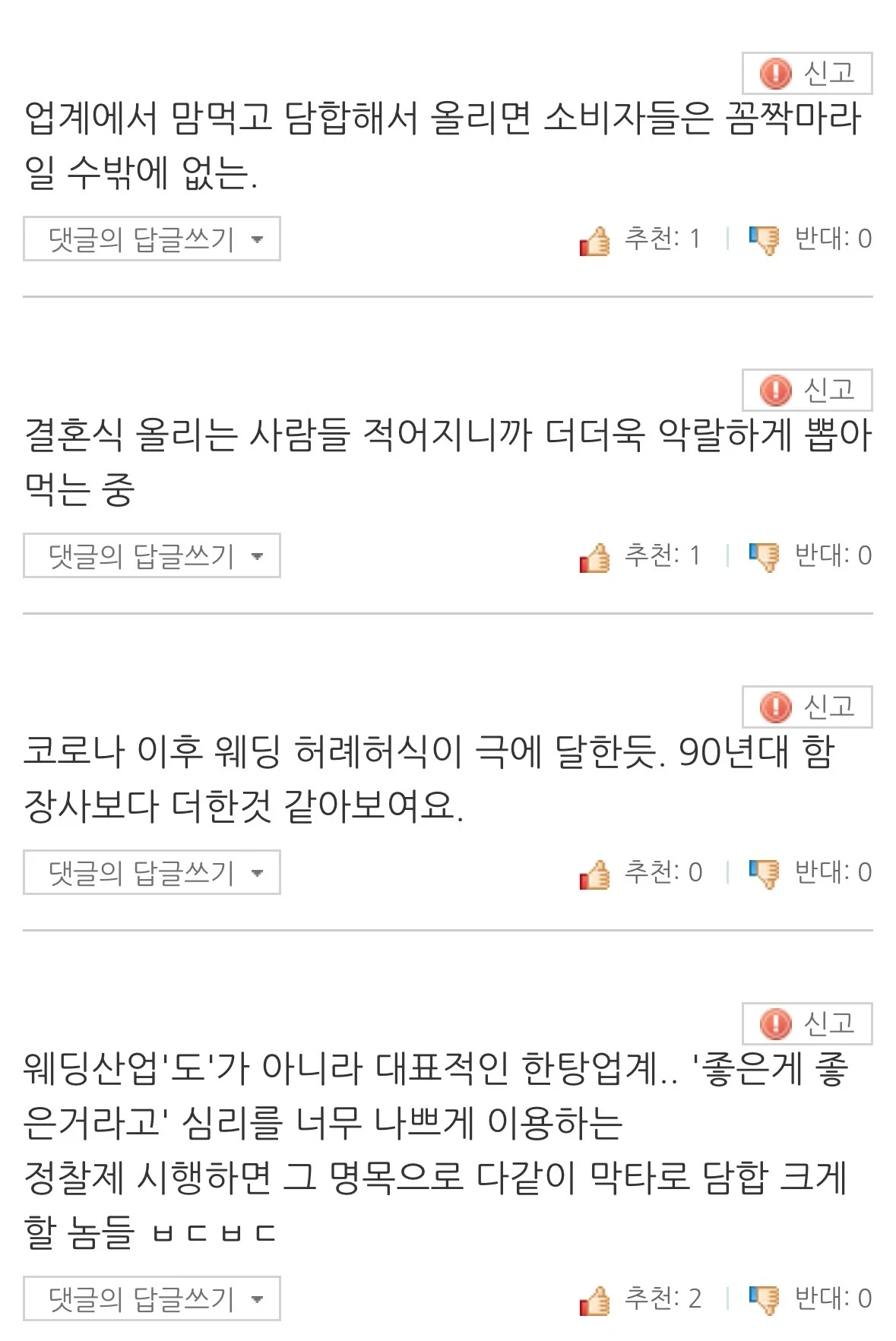 작성자하라고 작성시간 25.10.31 결혼하는 나이도 늦어지고 인간관계도 많이 좁아져서 앞으로 조금씩 바뀔것같음 가족끼리 식사자리만 한다든지 웨딩사진 안찍고 다른거 다 생략한뒤 가족들만 모며 딱 결혼본식?만 모여 최대한 작게 하는 경우도 예전보다 많이 봤음