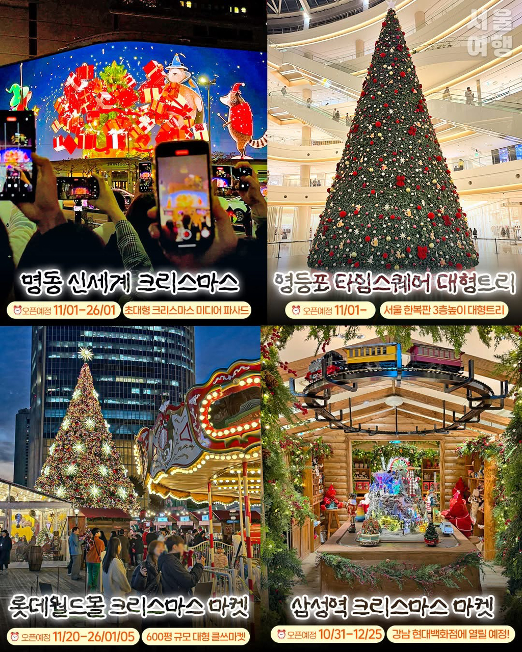 서울 대형 크리스마스 트리 볼 수 있는 곳들 작성자가을날3|작성시간25.11.01|조회수7,481 목록 댓글 4 글자크기 작게가 글자크기 크게가 출처 서울여행 다음검색 현재 게시글 추가 기능 열기 북마크 공유하기 신고 센터로 신고 댓글 댓글 4 댓글쓰기 답글쓰기 댓글 리스트 작성자아메리카노 | 작성시간 25.11.01 ㄷㄷ 작성자도그허니잼 | 작성시간 25.11.01 벌써 크리스마스가 다가오나.. 작성자금요일 | 작성시간 25.11.01 서울 대형 크리스마스 트리 작성자neworl | 작성시간 25.11.01 이번 현백 무역센터점 좀 허접하던데 ㅠㅠ 댓글 전체보기