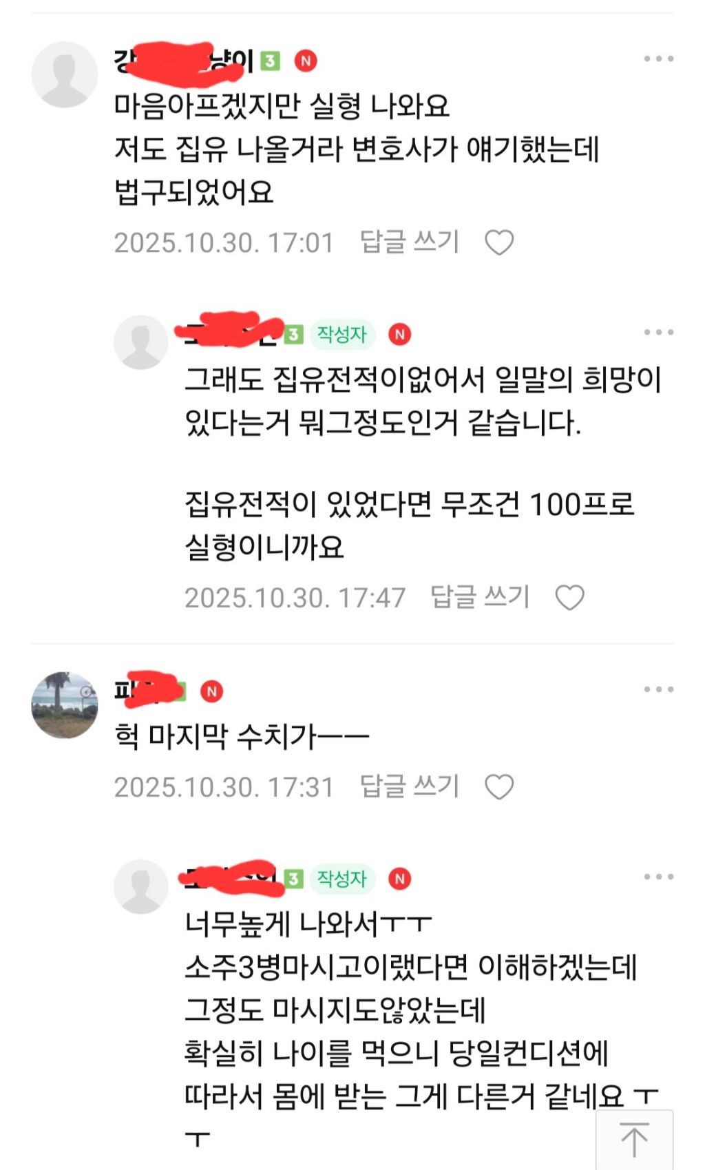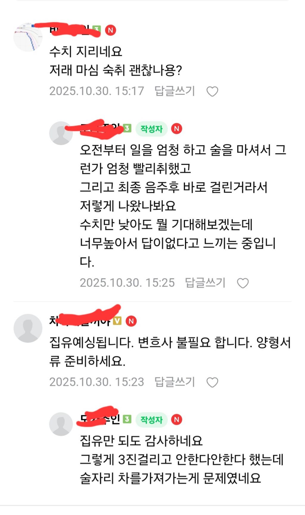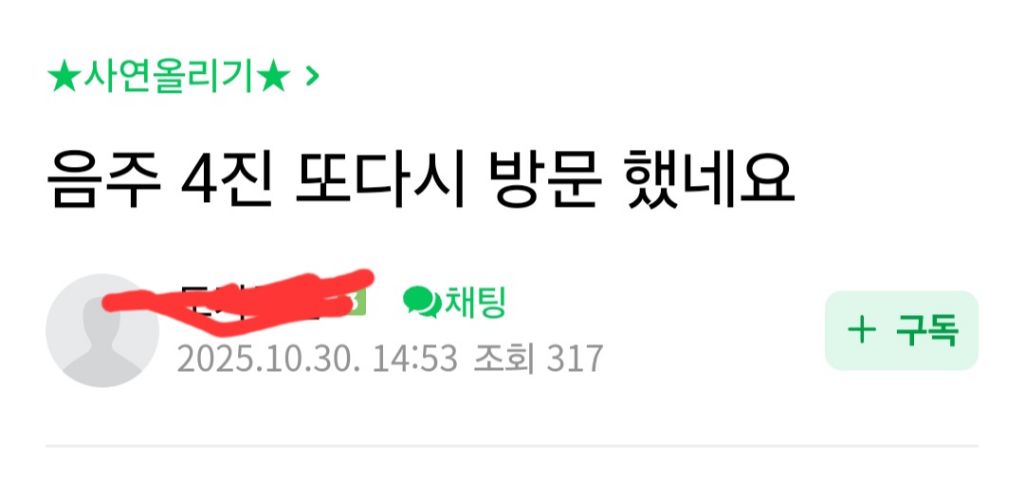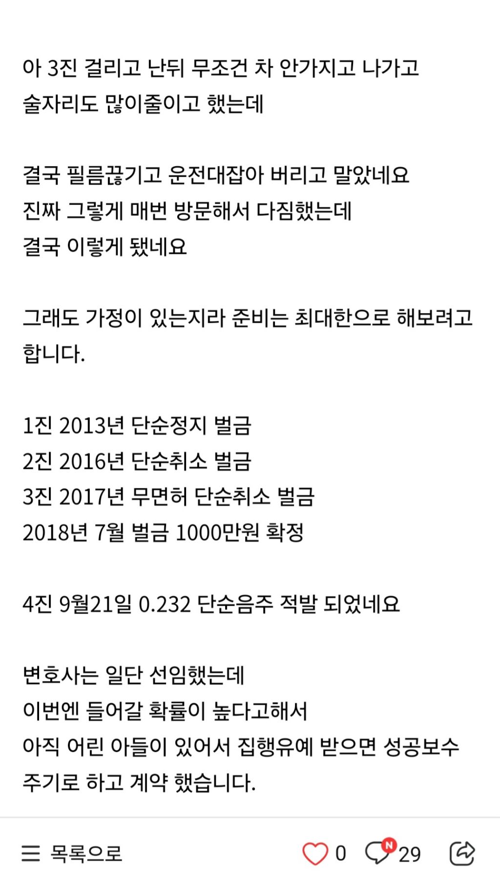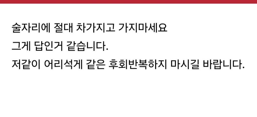 음주운전 4번 걸린 인간....jpg 작성자우정잉5|작성시간25.11.01|조회수6,922 목록 댓글 17 글자크기 작게가 글자크기 크게가 다음검색 현재 게시글 추가 기능 열기 북마크 공유하기 신고 센터로 신고 댓글 댓글 17 댓글쓰기 답글쓰기 댓글 리스트 작성자JTBC | 작성시간 25.11.01 필름 끊기고 사람도 들이받겠네 작성자승현파파 | 작성시간 25.11.01 ㅆㄹㄱ 작성자구하린 | 작성시간 25.11.01 구속 되것네 작성자랴냐빠 | 작성시간 25.11.01 술 자리에 차를 가지고 나가는게 문제가 아니란다정상인들은 아무리 쳐 먹고 필름 끊겨도 대리운전 불러서 옴 작성자우라질 | 작성시간 25.11.01 필림끊겼는데 몇병 마셨는지는 아네 ㅋㅋㅋ 댓글 전체보기