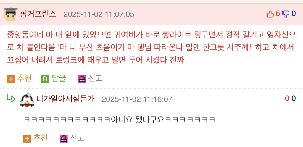부산에 처음 간 운전자.jpg 작성자Google|작성시간25.11.02|조회수5,189 목록 댓글 16 글자크기 작게가 글자크기 크게가 https://humoruniv.com/pds1388044 다음검색 현재 게시글 추가 기능 열기 북마크 공유하기 신고 센터로 신고 댓글 댓글 16 댓글쓰기 답글쓰기 댓글 리스트 작성자넥슨 | 작성시간 25.11.02 ㅋㅋㅋㅋㅋㄱ 작성자고우림 | 작성시간 25.11.02 ㅋㅋㅋㅋㅋ 마 이게 부산 인심이다 작성자SOWON | 작성시간 25.11.02 ㅋㅋㅋㅋㅋㅋ 작성자URUS | 작성시간 25.11.02 ㅋㅋㅋㅋㅋㅋ 작성자Levi Ackerman | 작성시간 25.11.02 밀면납치 ㄷㄷ 댓글 전체보기