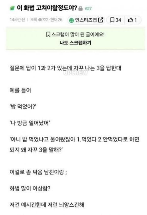작성자URUS 작성시간 25.11.03 여자가 화법 고쳐야하는게 맞음