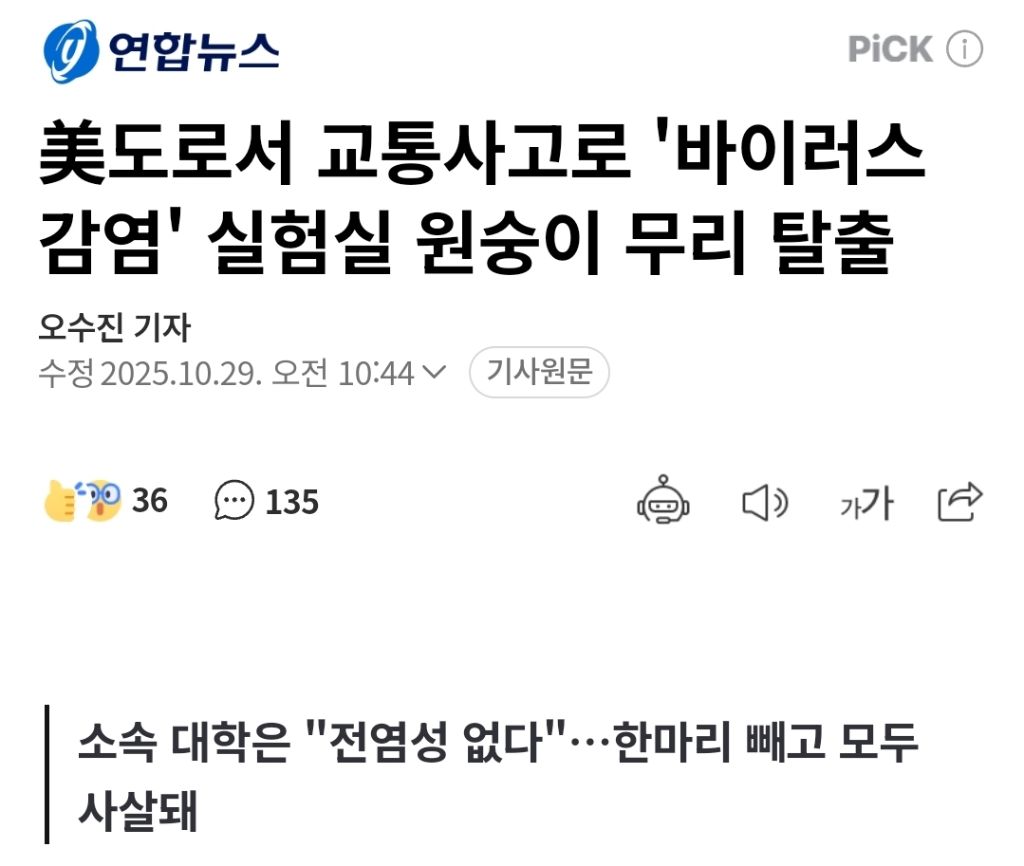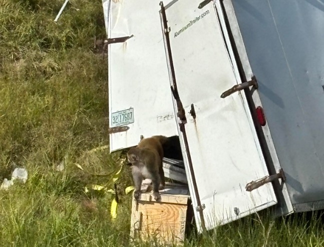실험을 위해 붉은털 원숭이를 운반하던 트럭에서 사고가 발생해