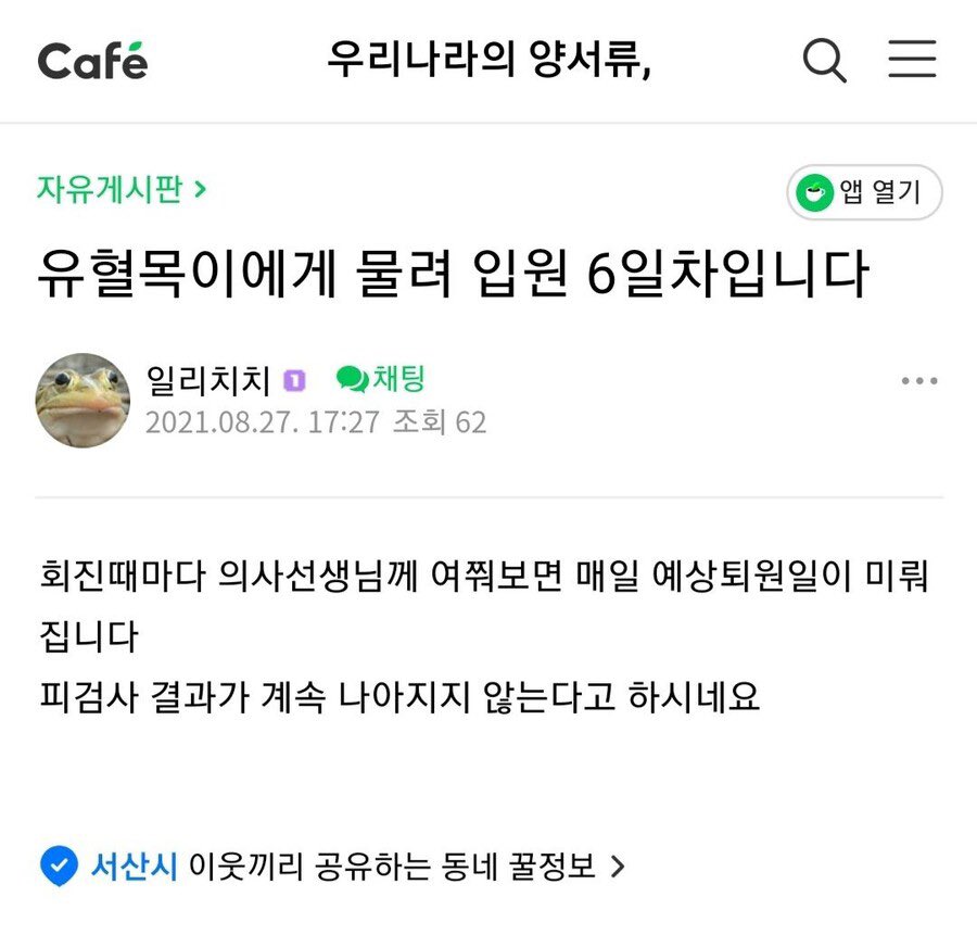 독사에게 물려보기 리뷰 ㄷㄷ 작성자Tove Styrke|작성시간25.11.04|조회수9,290 목록 댓글 5 글자크기 작게가 글자크기 크게가 다음검색 현재 게시글 추가 기능 열기 북마크 공유하기 신고 센터로 신고 댓글 댓글 5 댓글쓰기 답글쓰기 댓글 리스트 작성자이걸 지금 봤네 | 작성시간 25.11.04 뱀 무서워함으로 이름이.. ㅋㅋ 작성자마이너스템포 | 작성시간 25.11.04 이해가안되네ㄷㄷ 작성자Vicario | 작성시간 25.11.04 유혈목은 약도 없는걸로 아는데... 작성자No14.Ko Jong Su | 작성시간 25.11.04 사천당가 출신인가? 작성자임화영 | 작성시간 25.11.04 독왕인가 ㄷㄷ 댓글 전체보기