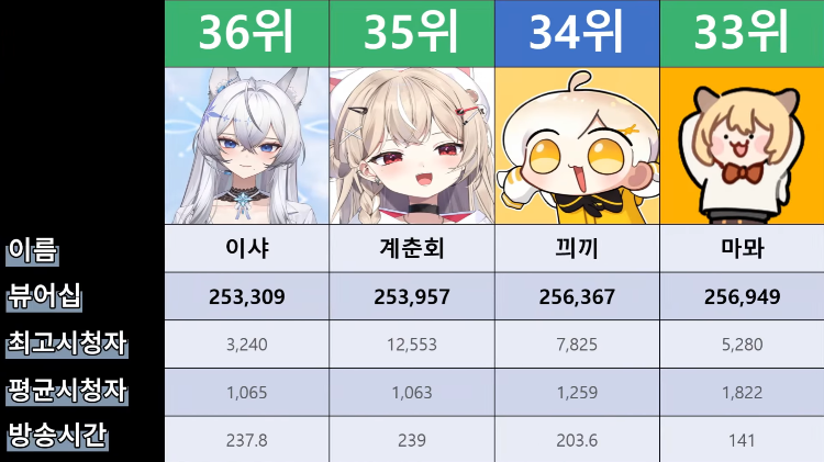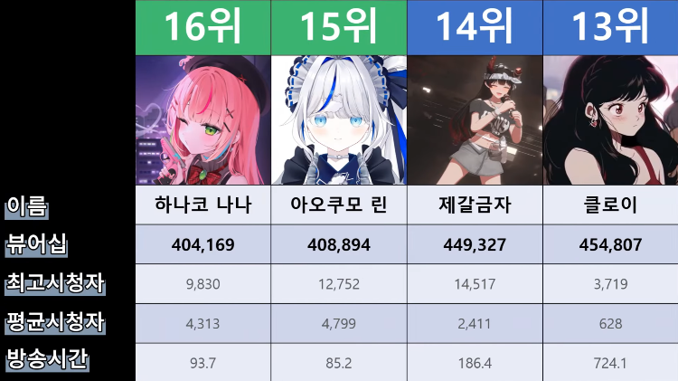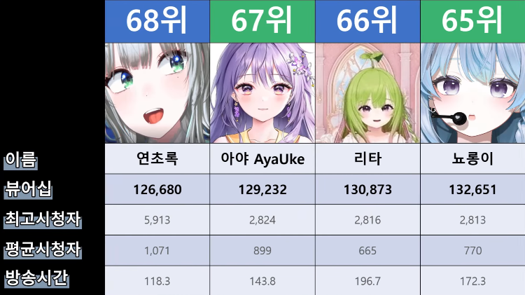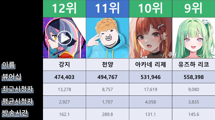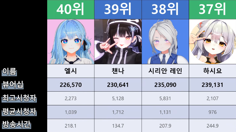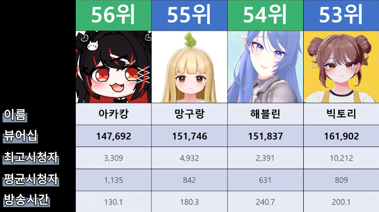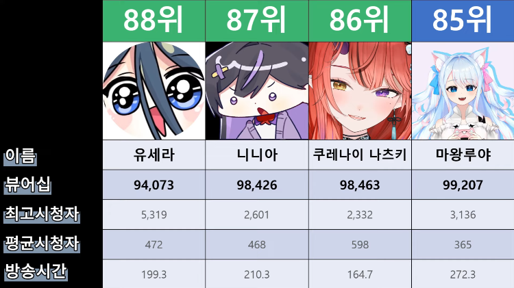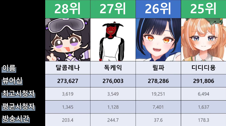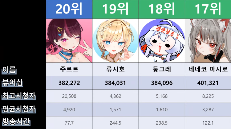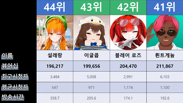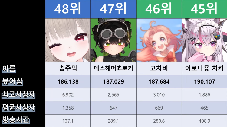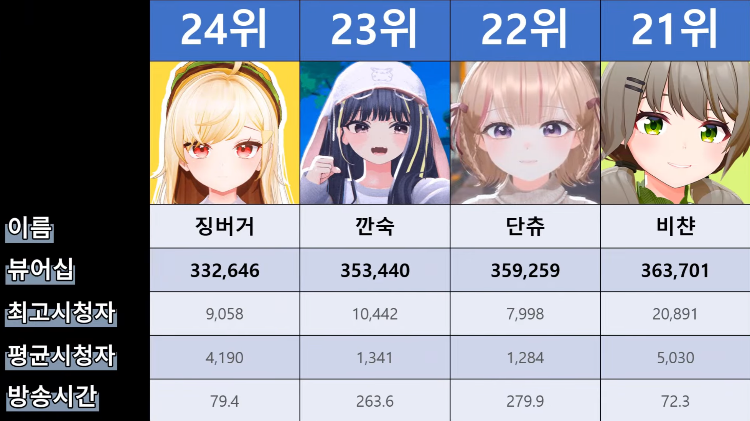 저 순위에 없는 버튜버들도 있어서...그 버튜버들은 왜 저기 안들어간건지 모르겠지만요ㅎㅎ -