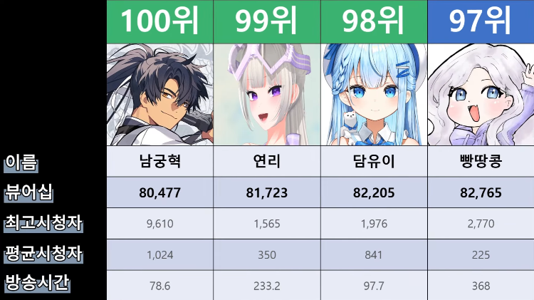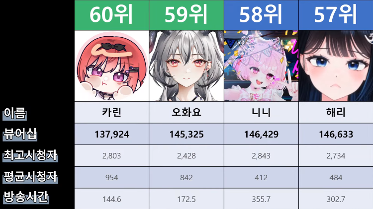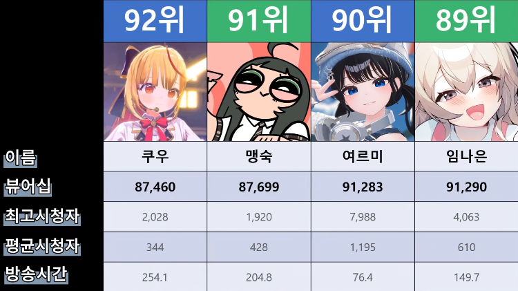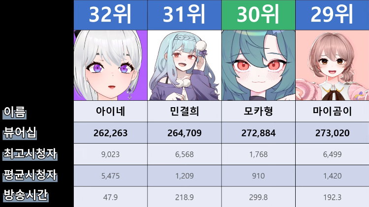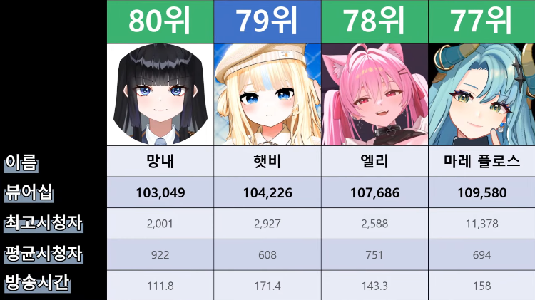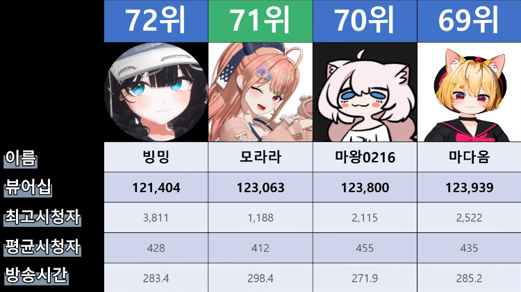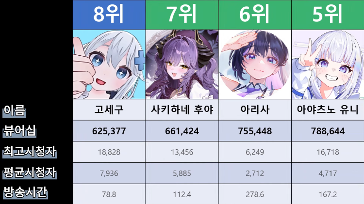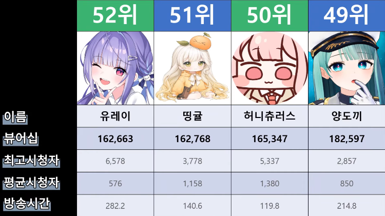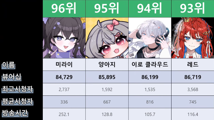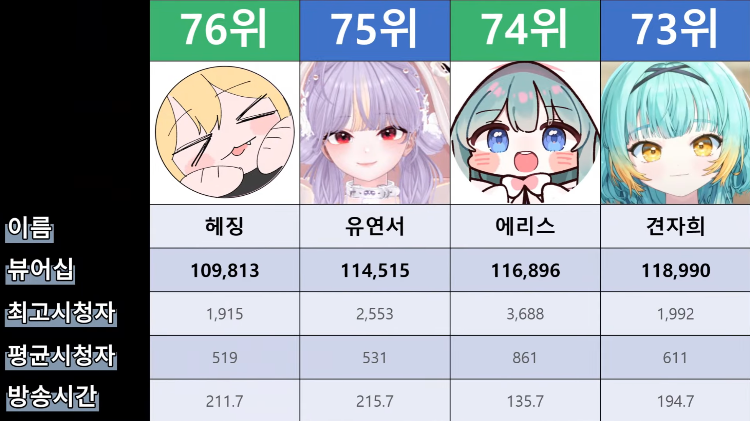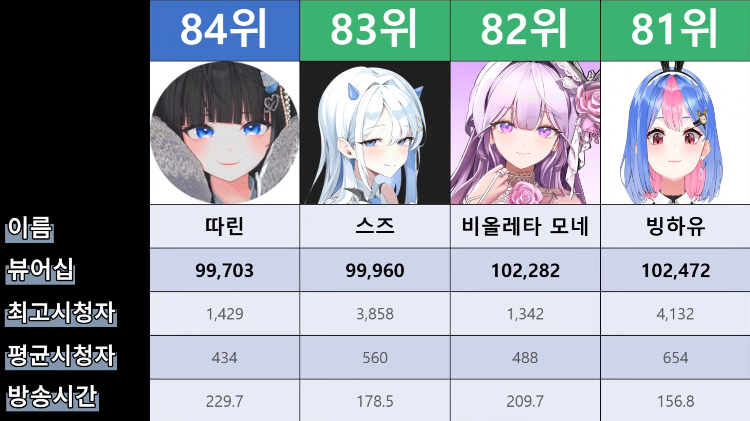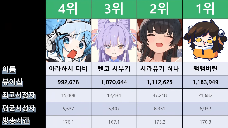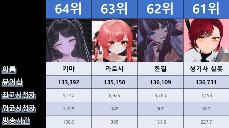 저 순위에 없는 버튜버들도 있어서...그 버튜버들은 왜 저기 안들어간건지 모르겠지만요ㅎㅎ -
