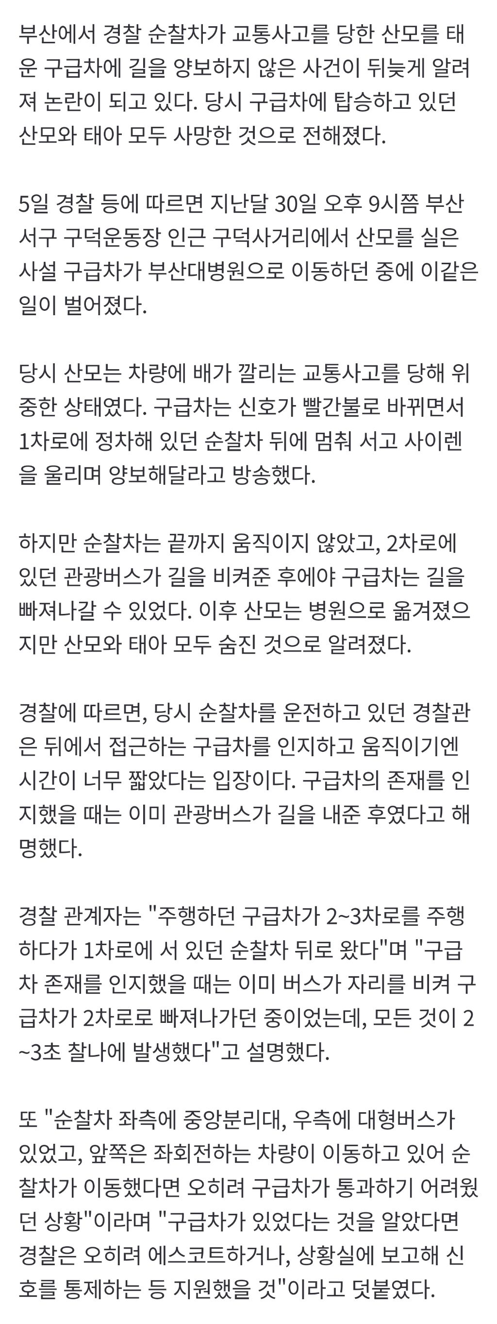 작성자금요일저녁 작성시간 25.11.06 경찰차가 바로 길 안터준건 좀 너무했다 싶고 뭐하고있었길래 싶긴 했지만