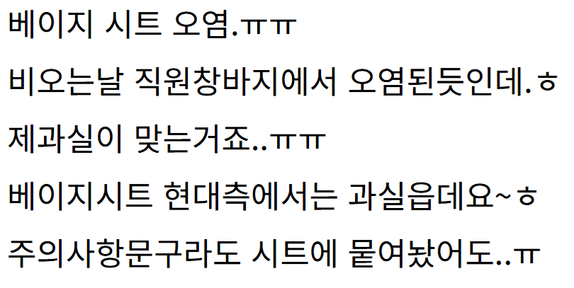 작성자께께오톡 작성시간 25.11.07 베이지 시트 5년째 타는데 저정도는 바지가 문제 ㅋㅋㅋ