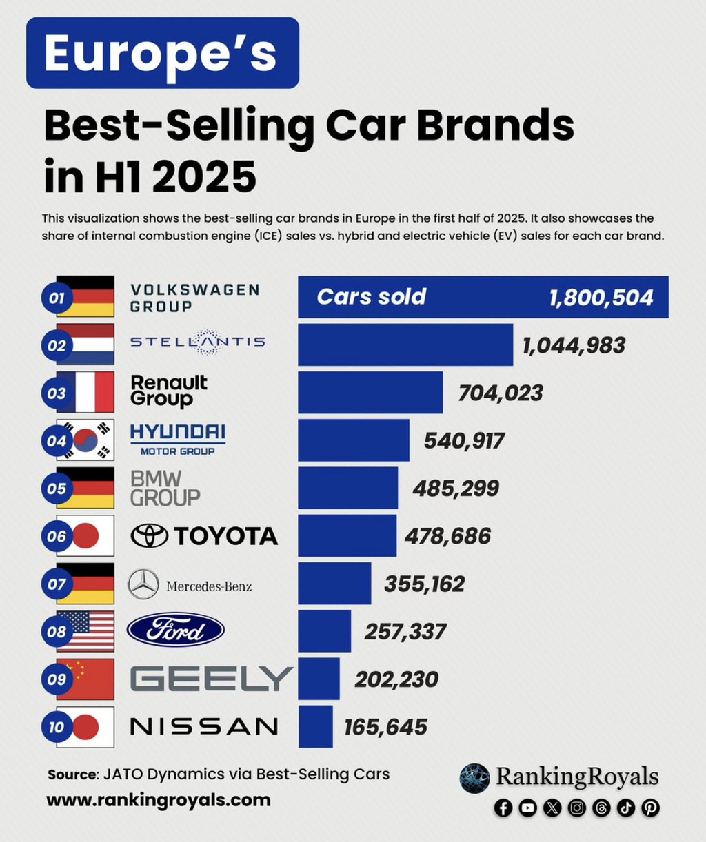 [정보]2025 상반기 유럽 자동차 판매 순위 작성자서울스날|작성시간25.11.07|조회수6,131 목록 댓글 11 글자크기 작게가 글자크기 크게가 다음검색 현재 게시글 추가 기능 열기 북마크 공유하기 신고 센터로 신고 댓글 댓글 11 댓글쓰기 답글쓰기 댓글 리스트 작성자stvgrd | 작성시간 25.11.07 현대야 주식도 좀 가자ㅏㅏㅏ 작성자유로파 | 작성시간 25.11.07 도요타를 이기네 ㄷㄷ 작성자용비어천가 | 작성시간 25.11.07 현대 ㄷㄷㄷ 작성자썸머맨 | 작성시간 25.11.07 2번째는 어디지 ㄷㄷ 답댓글 작성자두부과자 | 작성시간 25.11.07 푸조, 시트로앵, 크라이슬러 등등 합자 회사에요 댓글 전체보기