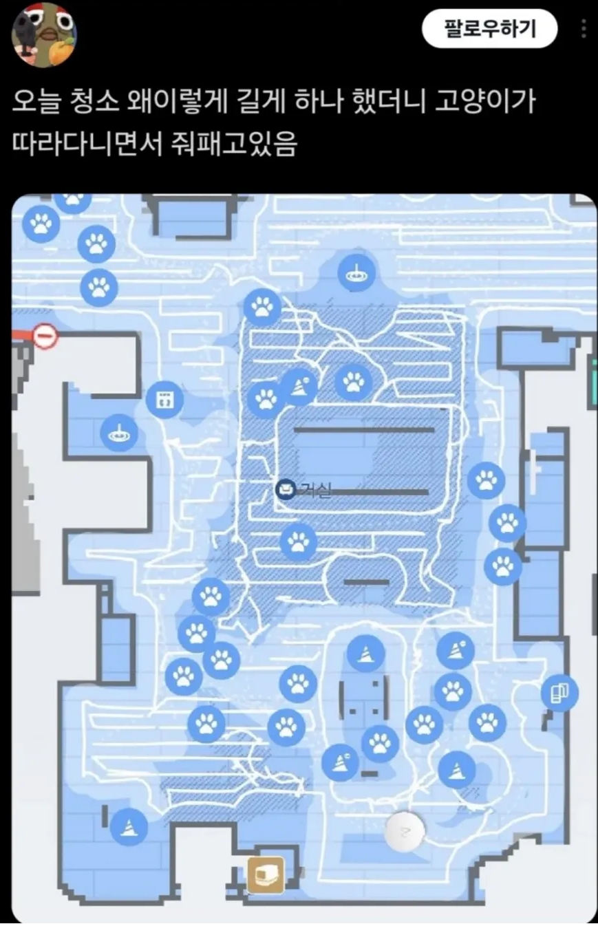 오늘 로봇청소기가 왜 이렇게 길게 하나 했더니 고양이가 따라다니면서 줘패고 있음 작성자러바오|작성시간25.11.08|조회수5,843 목록 댓글 2 글자크기 작게가 글자크기 크게가 다음검색 현재 게시글 추가 기능 열기 북마크 공유하기 신고 센터로 신고 댓글 댓글 2 댓글쓰기 답글쓰기 댓글 리스트 작성자다현 | 작성시간 25.11.08 노동자를 폭력으로 다루는ㄷㄷ 작성자고우림 | 작성시간 25.11.09 ㅋㅋㅋ 냥아치 댓글 전체보기
