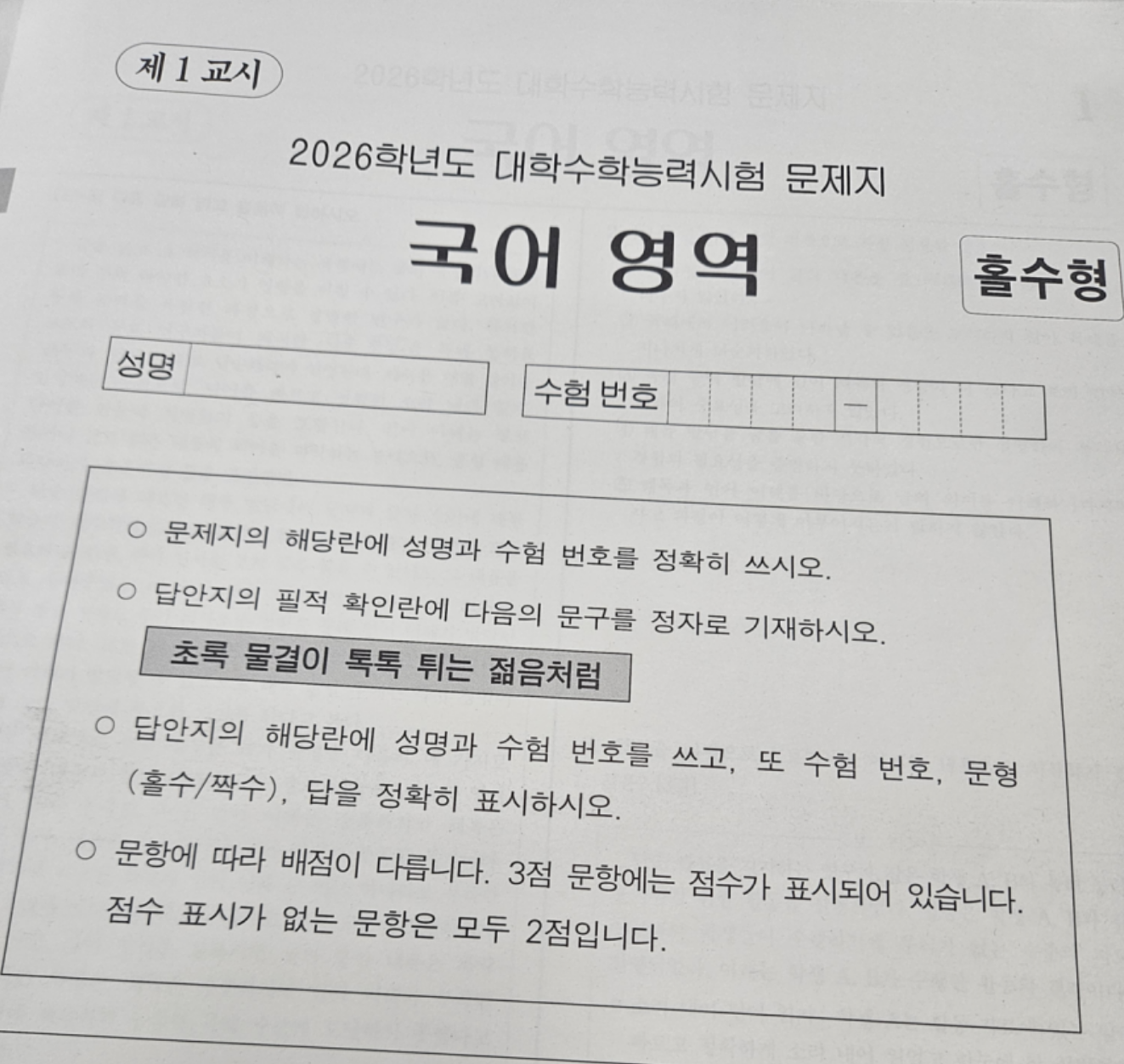 [기타]2026 수능 필적확인문구 작성자서울스날|작성시간25.11.13|조회수6,733 목록 댓글 3 글자크기 작게가 글자크기 크게가 안규례 시인의 '아침 산책' 구절 초록 물결이 톡톡 튀는 젊음처럼소주, 군대 아닙니다 다음검색 현재 게시글 추가 기능 열기 북마크 공유하기 신고 센터로 신고 댓글 댓글 3 댓글쓰기 답글쓰기 댓글 리스트 작성자DaLahmGee | 작성시간 25.11.13 자연스레 처음처럼으로 읽힘 ㅋㅋㅋㅋ 작성자뿌앵카레 정식 | 작성시간 25.11.13 뭔가 소주냄새나는걸 작성자흑흑맛있었다오늘밥은 | 작성시간 25.11.13 선명히 해를 핥던게 엊그제 같은데.. 댓글 전체보기