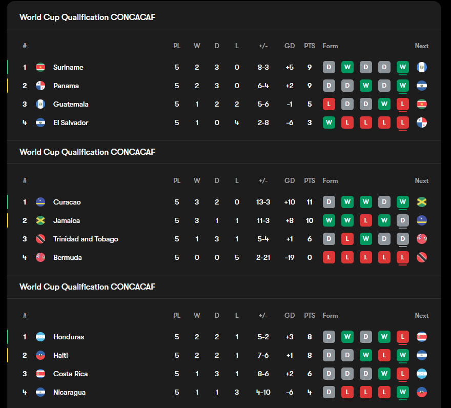 퀴라소가 자메이카를 승점 1점 앞서고 있는 가운데