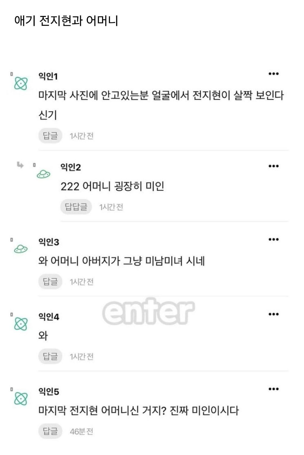 전지현 어릴적 사진 공개 작성자ChatGPT|작성시간25.11.15|조회수4,294 목록 댓글 4 글자크기 작게가 글자크기 크게가 다음검색 현재 게시글 추가 기능 열기 북마크 공유하기 신고 센터로 신고 댓글 댓글 4 댓글쓰기 답글쓰기 댓글 리스트 작성자지동원 | 작성시간 25.11.15 어머님 미모 ㄷㄷㄷ 작성자귀염둥이 | 작성시간 25.11.15 어머니 ㄷㄷㄷㄷㄷㄷ 작성자페더스 맥그로우 | 작성시간 25.11.15 어머니 ㄷㄷㄷㄷ 작성자Madrid | 작성시간 25.11.15 엄니 ㄷㄷ 댓글 전체보기