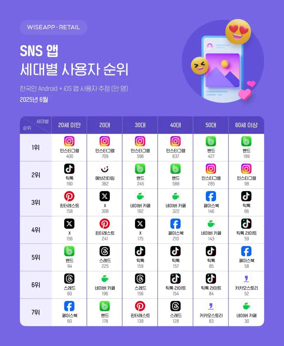 SNS 앱 세대별 사용자 순위 2025년 버전 작성자ChatGPT|작성시간25.11.15|조회수3,904 목록 댓글 8 글자크기 작게가 글자크기 크게가 다음검색 현재 게시글 추가 기능 열기 북마크 공유하기 신고 센터로 신고 댓글 댓글 8 댓글쓰기 답글쓰기 댓글 리스트 작성자채화 | 작성시간 25.11.15 밴드는 장사하면 유용하게쓰이던데 답댓글 작성자채화 | 작성시간 25.11.15 핀터레스트는뭐져 작성자탐부라 | 작성시간 25.11.15 핀터레스트가 SNS 기능있는거 처음알았음 작성자kikiringring | 작성시간 25.11.15 네이버카페는 있는데 다음카페는 없쪄.. 작성자파란사과 | 작성시간 25.11.15 카톡제외인가 댓글 전체보기