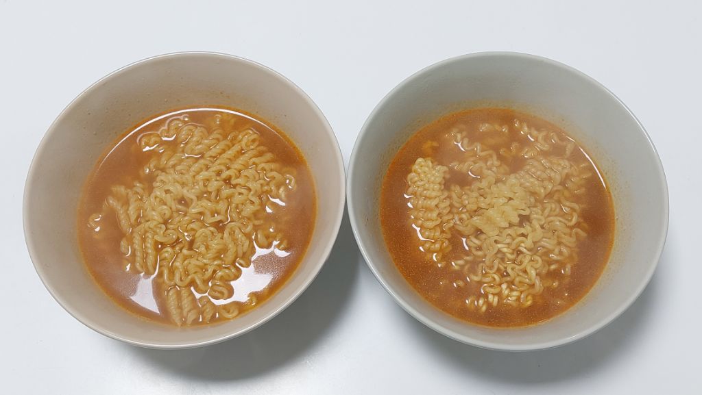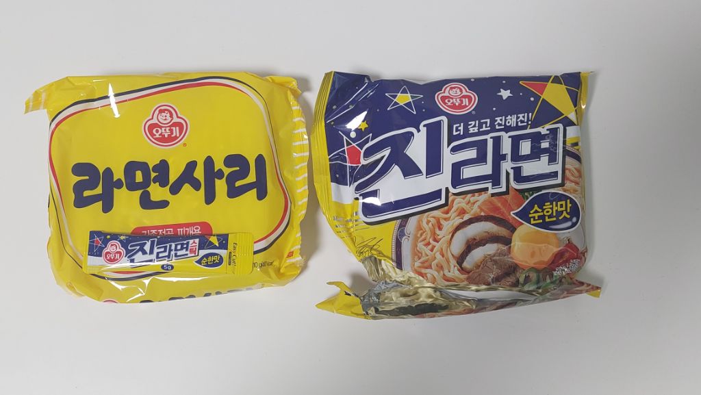 오뚜기 라면사리에 스프스틱으로 끊인 라면과, 진라면 맛이 어느정도 같을지 실험 해봤습니다.