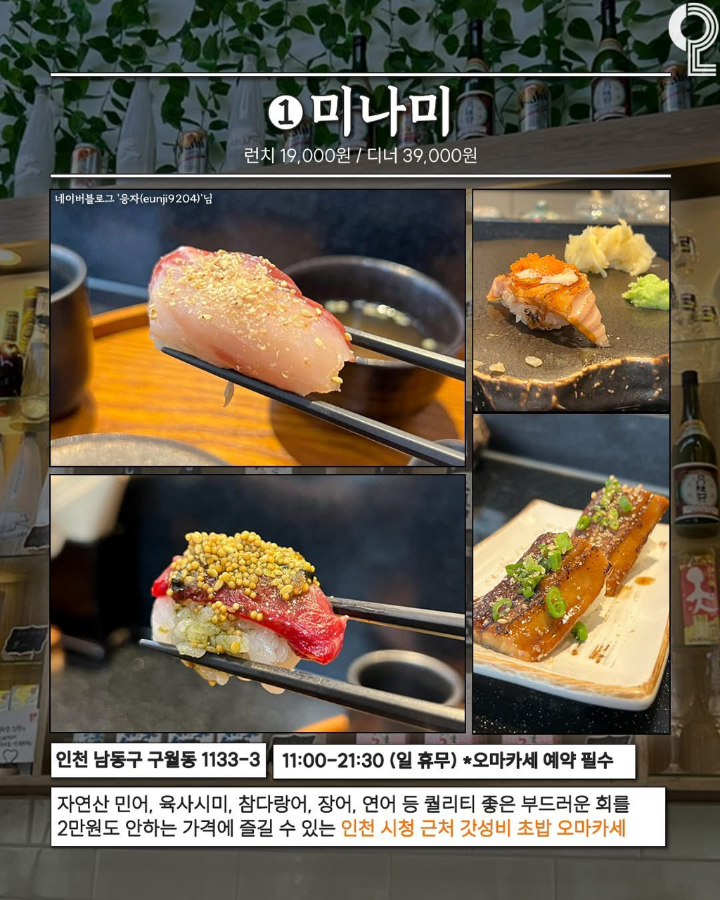 인천 5만원대 이하 가성비 오마카세 9 작성자가을날3|작성시간25.11.17|조회수9,027 목록 댓글 14 글자크기 작게가 글자크기 크게가 출처 인천에서뭐하지 다음검색 현재 게시글 추가 기능 열기 북마크 공유하기 신고 센터로 신고 댓글 댓글 14 댓글쓰기 답글쓰기 댓글 리스트 작성자유상철 | 작성시간 25.11.17 오마카세 인천 작성자하마 | 작성시간 25.11.17 인천오마카세 작성자봉준호 | 작성시간 25.11.17 우지 가봤는데 꽤 괜찮았음. 그리고 매니저분인지 주문받으시는분 진짜 엄청난 미인. 작성자No.15 Nemanja Vidic | 작성시간 25.11.17 인천 작성자ll가레스베일ll | 작성시간 25.11.17 인천 오마카세 댓글 전체보기