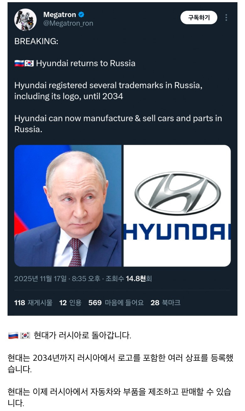 답댓글 작성자Panzerkampfwagen 작성시간 25.11.18 러시아에 대한 호불호를 떠나서