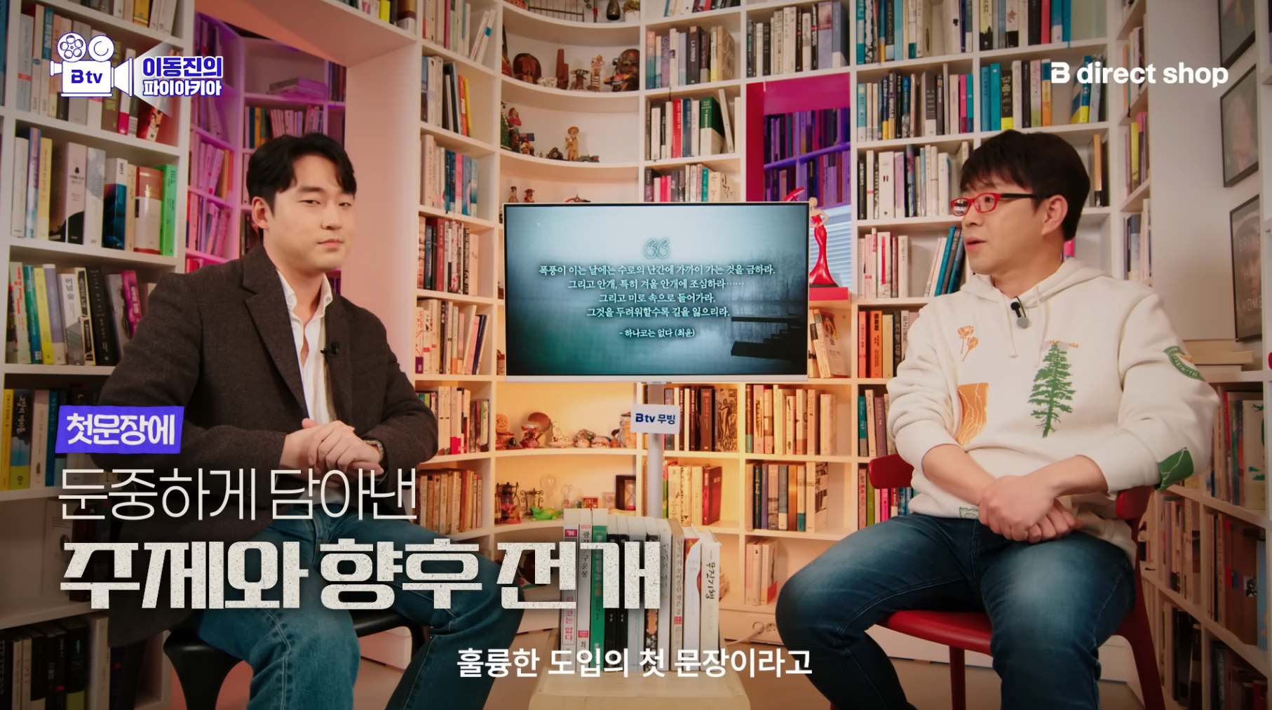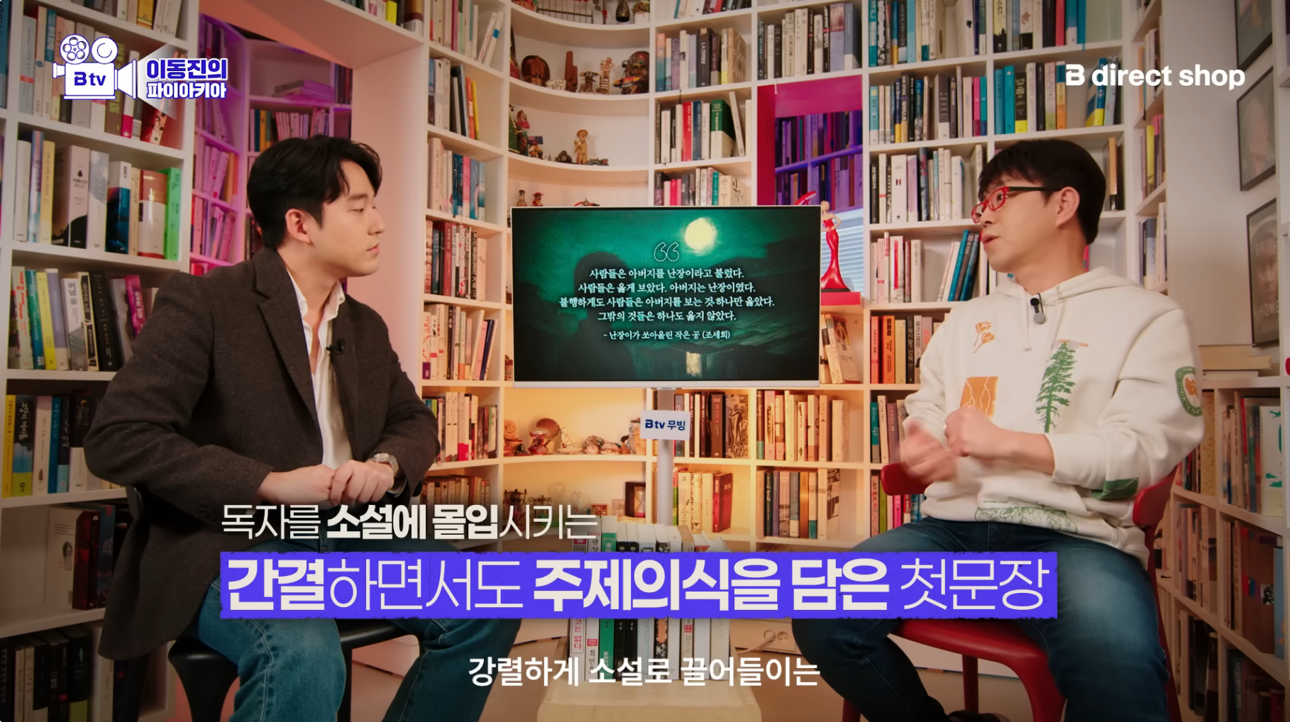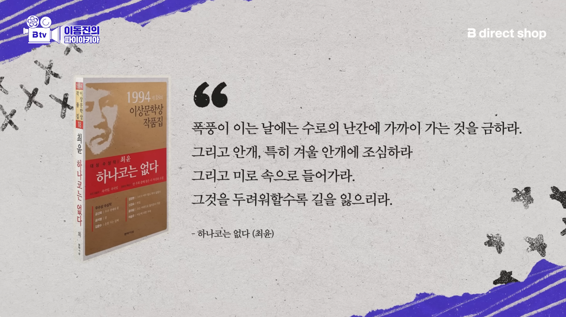 이동진 평론가가 고른 한국소설 최고의 첫 문장 BEST 10 작성자서울스날|작성시간25.11.19|조회수4,054 목록 댓글 9 글자크기 작게가 글자크기 크게가 https://www.youtube.com/watch?v=NWn8nZ75nRk 다음검색 현재 게시글 추가 기능 열기 북마크 공유하기 신고 센터로 신고 댓글 댓글 9 댓글쓰기 답글쓰기 댓글 리스트 작성자I’d rather be ashes than dust | 작성시간 25.11.19 문은 탄식하는 소리를 내며 열렸다 작성자진규형 | 작성시간 25.11.19 교과서 + 7년의밤, 칼의노래, 소년이온다 작성자Alexis Sanchez | 작성시간 25.11.19 7년의 밤, 칼의 노래는 봤네 작성자오스먼트 | 작성시간 25.11.19 추천 도서! 작성자아다치 미츠루 | 작성시간 25.11.20 ㄷㄱ 댓글 전체보기