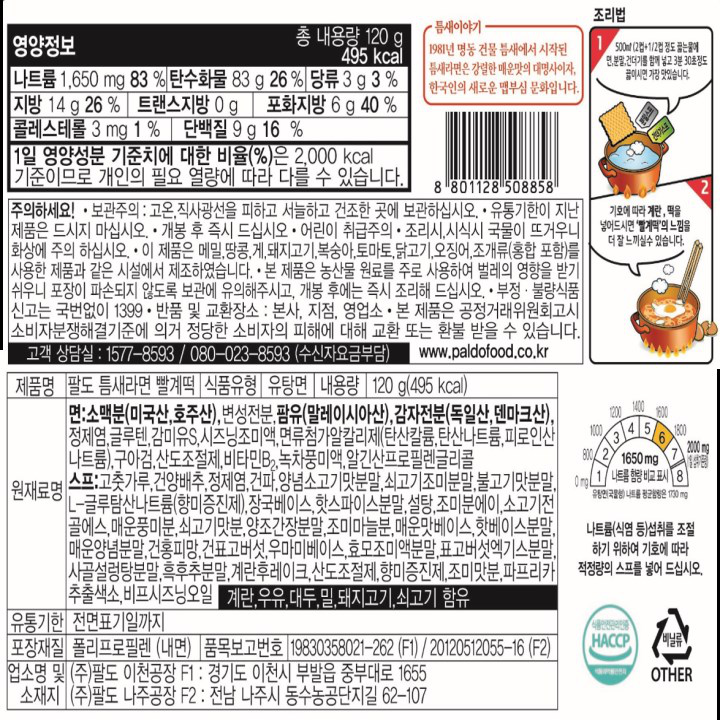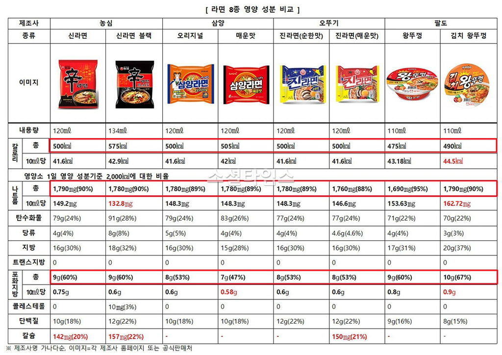 (틈새는 3g으로 시중라면 중 제일 낮음)