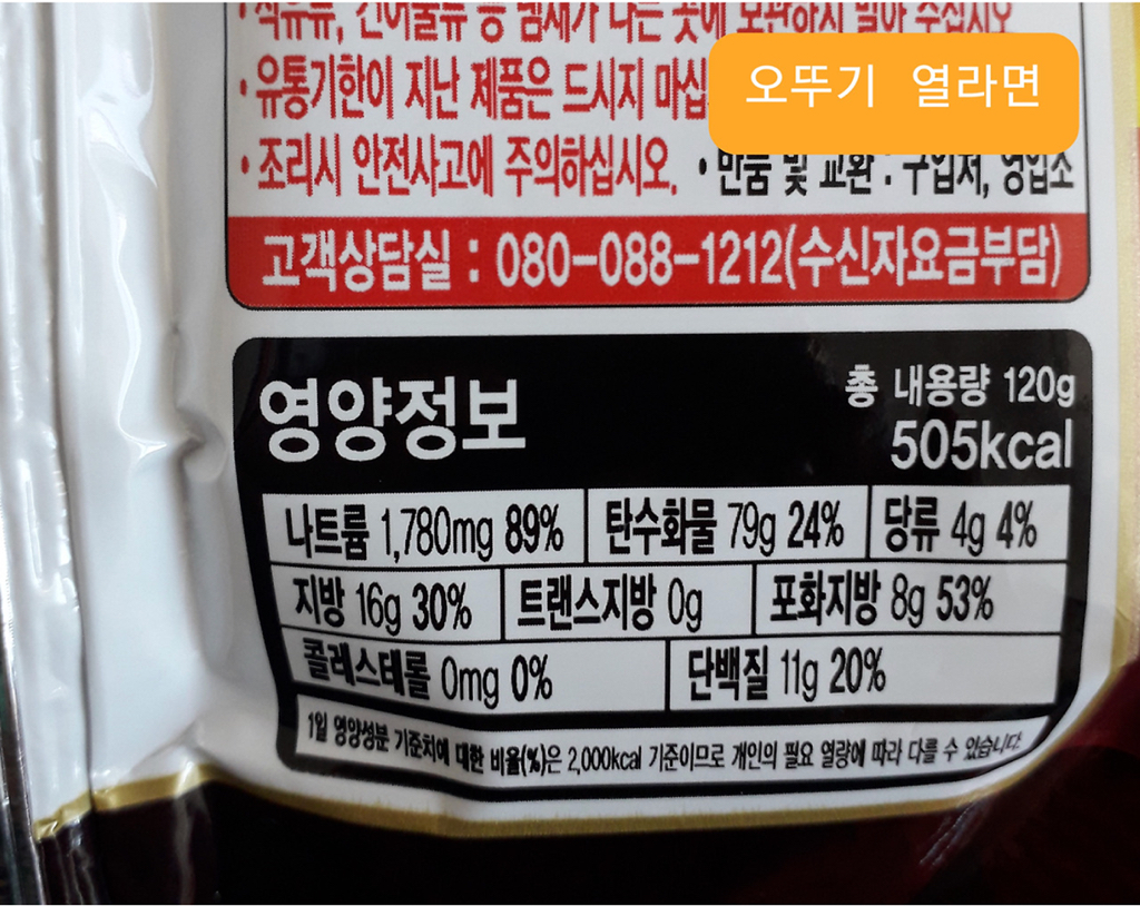 당류는 4g 으로 시중라면과 동일함