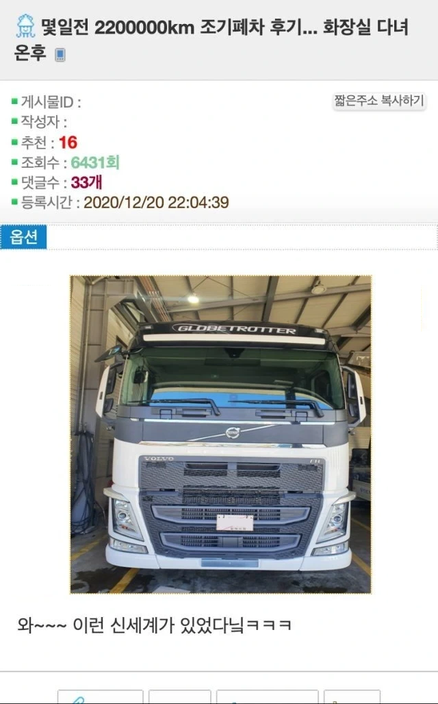 220만키로 뛴 차를 폐차한 차주 근황 작성자인조인간 17호|작성시간25.11.22|조회수6,124 목록 댓글 4 글자크기 작게가 글자크기 크게가 다음검색 현재 게시글 추가 기능 열기 북마크 공유하기 신고 센터로 신고 댓글 댓글 4 댓글쓰기 답글쓰기 댓글 리스트 작성자아메리고 | 작성시간 25.11.22 220만 주행이 가능하군요!저는 쏘렌토 36만km까지 타고 퍼져서 폐차했는데 작성자몽념, 낙화대 | 작성시간 25.11.22 응 신차보면 다 잊어~ 작성자Jesse Lingard | 작성시간 25.11.22 sm5 택시 72만키로 보고 놀랫엇는데ㅋㅋ 작성자성남전위대장 | 작성시간 25.11.22 220만인데 굴러가는게 신기... 댓글 전체보기