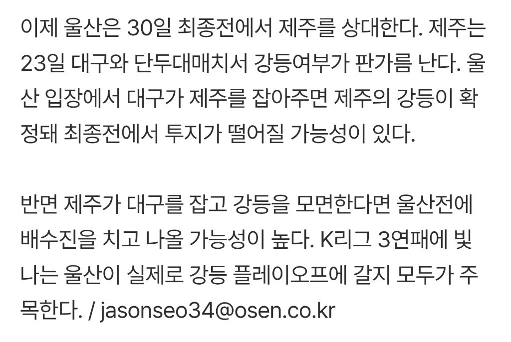작성자오스먼트 작성시간 25.11.22 일단 내일 제주 대구전 결과를 지켜봐야겠네요!
