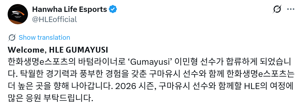 [E스포츠][오피셜] 한화생명 구마유시 영입 작성자서울스날|작성시간25.11.23|조회수4,804 목록 댓글 7 글자크기 작게가 글자크기 크게가 - 2년 계약 다음검색 현재 게시글 추가 기능 열기 북마크 공유하기 신고 센터로 신고 댓글 댓글 7 댓글쓰기 답글쓰기 댓글 리스트 작성자故대한축구협회 | 작성시간 25.11.23 와 이게 되네 작성자Francesc Fàbregas | 작성시간 25.11.23 한화로 모이는 거야?ㅋㅋㅋㅋ 작성자금요일 | 작성시간 25.11.23 구마유시 작성자KingHenry14 | 작성시간 25.11.24 작성자jangs | 작성시간 25.11.24 오피셜 떳네 댓글 전체보기