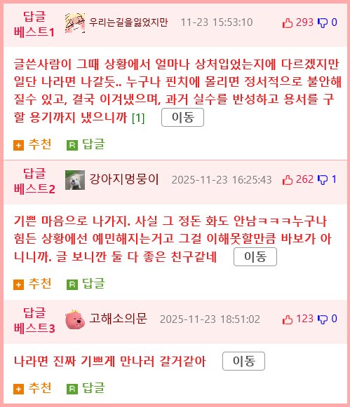 그래도 사과할려고하네... 앞으로 친하게 지낼 수 는 없겠지만 그래도 얼굴보고 서로 안좋았던 과거는 정리하면 좋긴하죠.