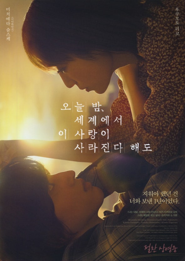 작성자이해리작성시간25.11.25조회수2,851 목록 댓글 5일본영화로서 국내 관객수 121만명을 기록하여 역대 일본 실사 영화 흥행2위 기록한 [ 오늘밤 세계에서 이사랑이 사라진다해도 ] 가 한국판으로 리메이크