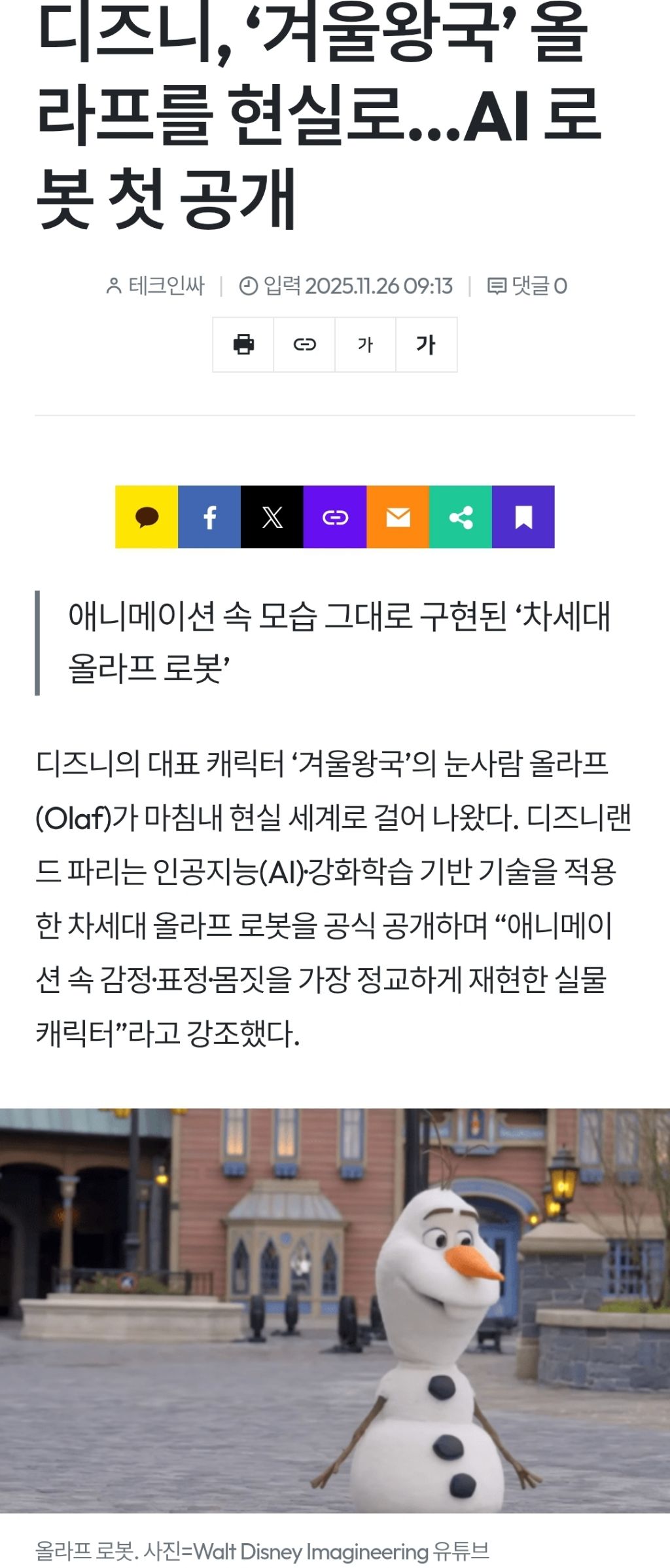 [영상]디즈니 올라프 로봇 공개 작성자행동하는자|작성시간25.11.26|조회수1,281 목록 댓글 3 글자크기 작게가 글자크기 크게가 cr. https://www.kmjournal.net/news/articleView.html?idxno=5588https://v.daum.net/v/20251125103352850https://x.com/uahan2/status/1993126278254440510X의 우아한님(@uahan2)월트 디즈니, 올라프 로봇 공개 • 자유롭게 돌아다니며 방문객과 상호 작용 가능 • 홍콩 디즈니랜드와 디즈니랜드 파리의 겨울왕국 테마 구역 ‘월드 오브 프로즌’에서 한정 기간 운용 예정x.comhttps://youtu.be/_mgXdaqkbM4https://x.com/DiscussingFilm/status/1993036187519566285X의 DiscussingFilm님(@DiscussingFilm)First look at a new Olaf animatronic • The animatronic is able to meet guests and speak/interact with them • Coming soon to Disneyland Paris’ upcoming World of Frozen landx.comhttps://x.com/SummerMinvest/status/1993186714236731484 다음검색 현재 게시글 추가 기능 열기 북마크 공유하기 신고 센터로 신고 댓글 댓글 3 댓글쓰기 답글쓰기 댓글 리스트 작성자롭슨 | 작성시간 25.11.26 오 작성자오스먼트 | 작성시간 25.11.26 우와 귀엽다! 작성자Shawn Heungderson | 작성시간 25.11.26 와.... 만화가 현실이 되는 날이 오는구나 댓글 전체보기