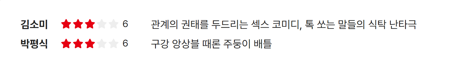 [영화]하정우 연출 '윗집사람들' 씨네21 별점 작성자서울스날|작성시간25.11.30|조회수3,907 목록 댓글 3 글자크기 작게가 글자크기 크게가 다음검색 현재 게시글 추가 기능 열기 북마크 공유하기 신고 센터로 신고 댓글 댓글 3 댓글쓰기 답글쓰기 댓글 리스트 작성자루이스 나니 | 작성시간 25.11.30 박평식의 6점 작성자I’d rather be ashes than dust | 작성시간 25.11.30 주둥이배틀 ㅋㅋ 작성자치킨 | 작성시간 25.11.30 주둥이배틀 보고 하정우감독인가 했는데 맞네ㅋ 댓글 전체보기