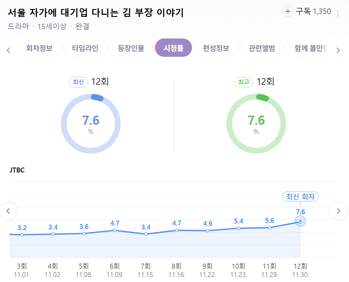 12회 최종회 최고 시청률 종영