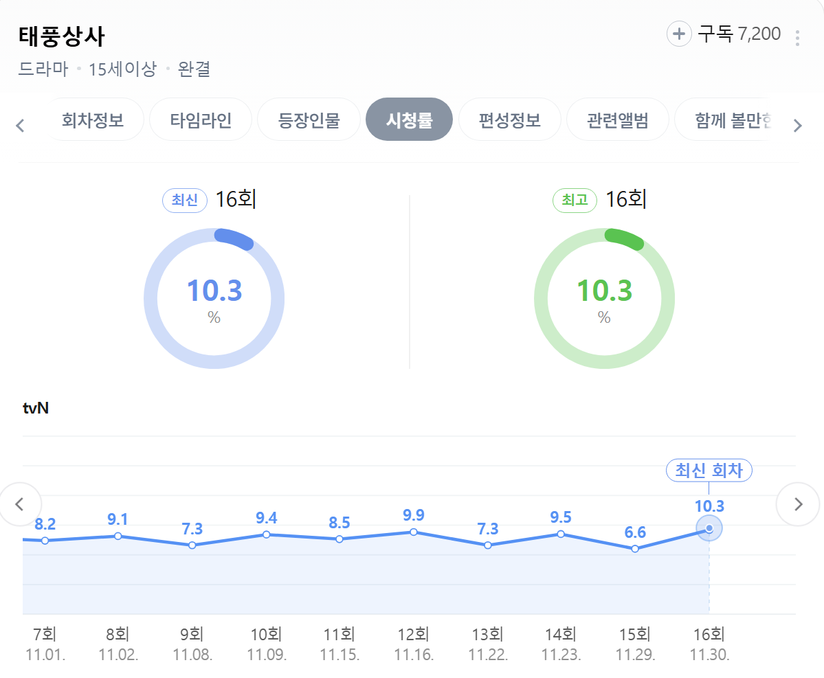16회 최종회 최고 시청률 종영