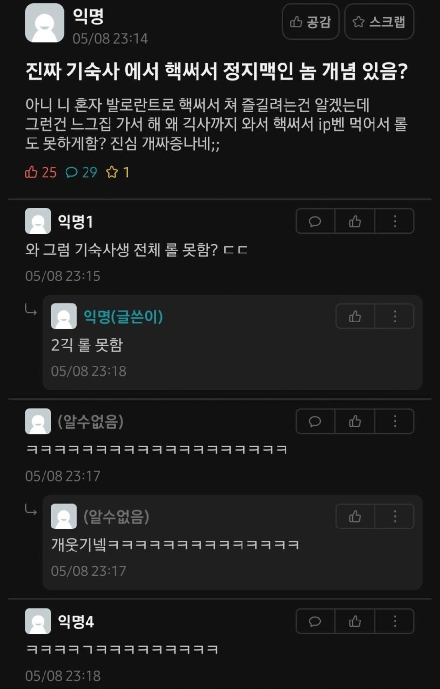 [유머]기숙사 게임 핵쟁이 대참사.jpg 작성자강동구주민 3|작성시간25.12.02|조회수3,645 목록 댓글 5 글자크기 작게가 글자크기 크게가 다음검색 현재 게시글 추가 기능 열기 북마크 공유하기 신고 센터로 신고 댓글 댓글 5 댓글쓰기 답글쓰기 댓글 리스트 작성자유빈 | 작성시간 25.12.02 와.... 범인 잡아다가 조리돌림해도 ㅇㅈ이다 작성자매생이 전복죽 | 작성시간 25.12.02 ㅋㅋㅋㅋㅋㅋㅋㅋㅋ진짜 무슨 민폐야 저게 작성자정휘인 | 작성시간 25.12.02 잡아다 족쳐야지 저건 작성자금요일 | 작성시간 25.12.02 아 .. 작성자고두심 | 작성시간 25.12.02 와 대단하다 댓글 전체보기