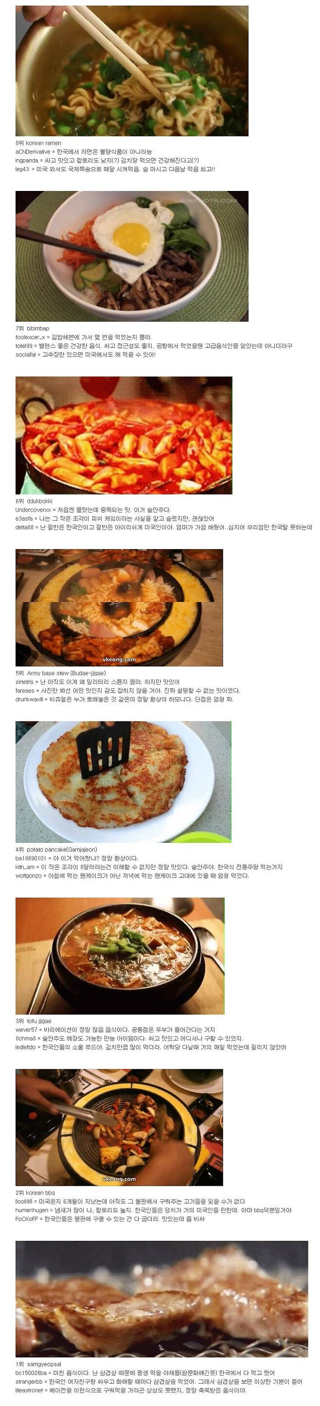 외국인이 뽑은 한국음식 베스트 작성자러바오|작성시간25.12.05|조회수3,870 목록 댓글 2 글자크기 작게가 글자크기 크게가 다음검색 현재 게시글 추가 기능 열기 북마크 공유하기 신고 센터로 신고 댓글 댓글 2 댓글쓰기 답글쓰기 댓글 리스트 작성자서울 자가에 FC서울 감독인 김기동 | 작성시간 25.12.05 떡갈비 좋아할것같은데 작성자라이언 흐라벤베르흐 | 작성시간 25.12.05 치즈닭갈비가 없다고?? 댓글 전체보기