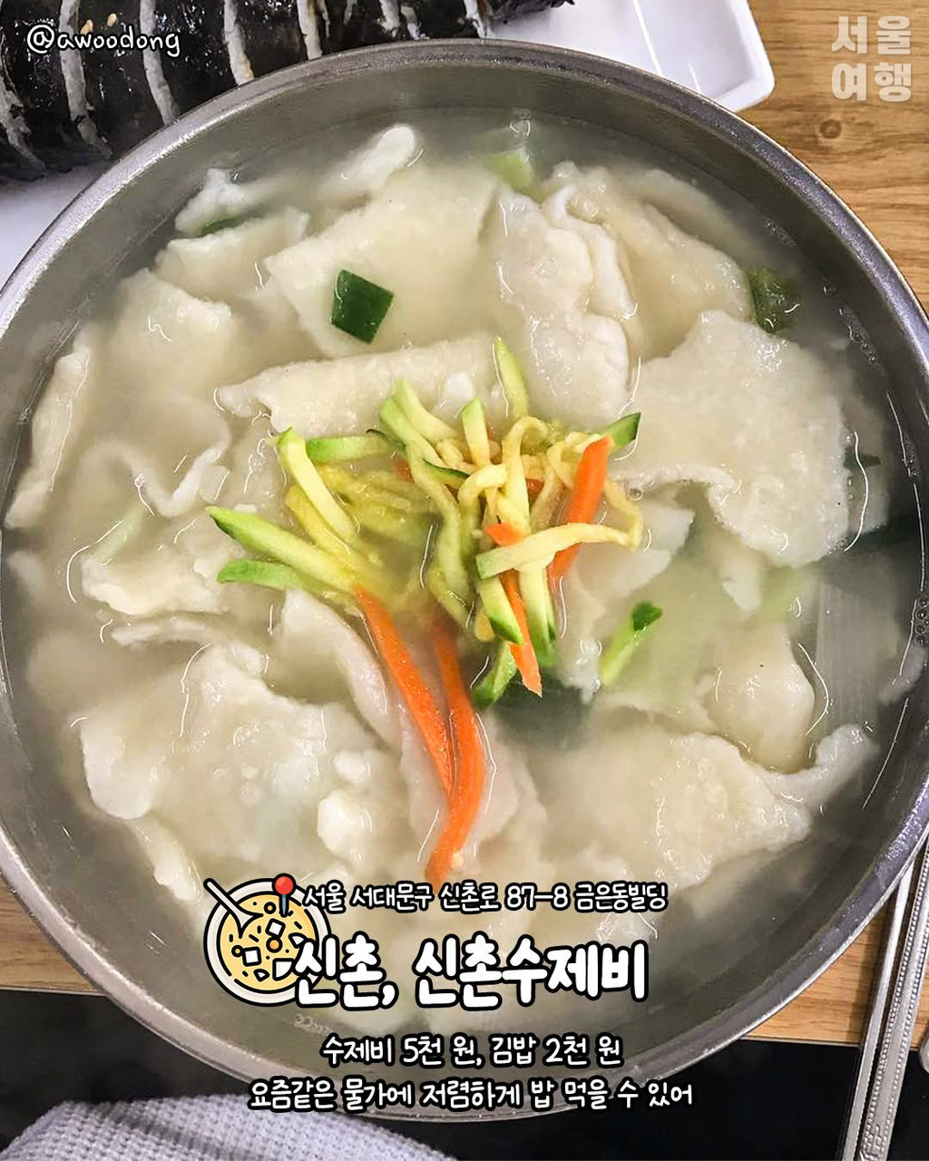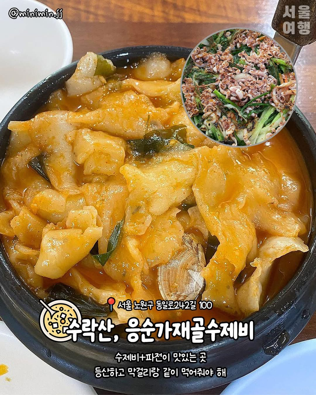서울 수제비 맛집 작성자가을날3|작성시간25.12.07|조회수8,590 목록 댓글 14 글자크기 작게가 글자크기 크게가 출처 서울여행 다음검색 현재 게시글 추가 기능 열기 북마크 공유하기 신고 센터로 신고 댓글 댓글 14 댓글쓰기 답글쓰기 댓글 리스트 작성자나연 | 작성시간 25.12.07 ㅅㅈㅂ 작성자러빗 | 작성시간 25.12.07 수제비 참 좋아하는데요..혼밥 가능한가 , 같이 갈사람이 없네 답댓글 작성자너 나 안 본 지 두 달 다 돼 감 | 작성시간 25.12.07 신촌 수제비는 가능합니다. 작성자감자가최고 | 작성시간 25.12.07 수제비 작성자오뉴월서리 | 작성시간 26.01.07 서울 수제비 댓글 전체보기