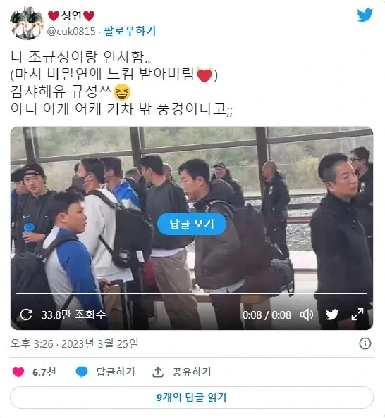 조규성하고 비밀 연애하는 기분 들었다는 트위터 유저 작성자인조인간 17호|작성시간25.12.08|조회수10,753 목록 댓글 8 글자크기 작게가 글자크기 크게가 다음검색 현재 게시글 추가 기능 열기 북마크 공유하기 신고 센터로 신고 댓글 댓글 8 댓글쓰기 답글쓰기 댓글 리스트 작성자금요일 | 작성시간 25.12.08 ㅋㅋㅋㅋㅋㅋㅋ 작성자서울스날 | 작성시간 25.12.08 ㅋㅋㅋㅋㅋㅋㅋㅋㅋㅋㅋㅋㅋ아련하네 작성자아메리카노 | 작성시간 25.12.08 야 이건 ㅋㅋㅋㅋㅋㅋ 작성자똘끼타카 | 작성시간 25.12.08 왜 혼자 청춘 영화 주인공이 됐엌ㅋㅋㅋㅋㅋ 작성자이나경 | 작성시간 25.12.08 ㅋㅋㅋㅋㅋㅋㅋㅋ 댓글 전체보기