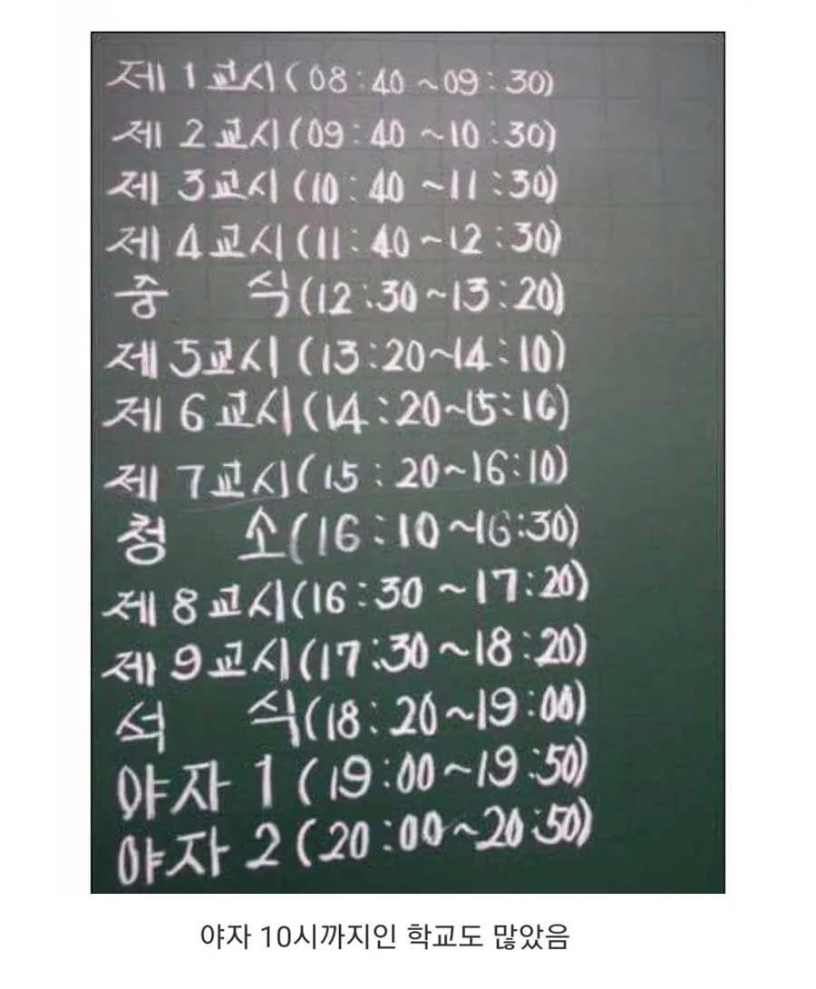 난 8시에 0교시 시작이고 야자는 밤11시까지 했는데...