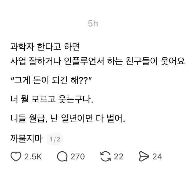 사업 잘하는 친구, 인플루언서 친구 1달수입 = 과학자 연봉